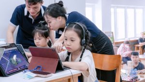 - Mô hình lớp học tương tác đa chiều: Mỗi phòng học được trang bị bảng tương tác thông minh và tablet cá nhân cho từng học sinh, giúp tối đa hóa sự tương tác, nâng cao hiệu quả tiếp thu và phát triển tư duy công nghệ từ sớm.