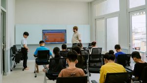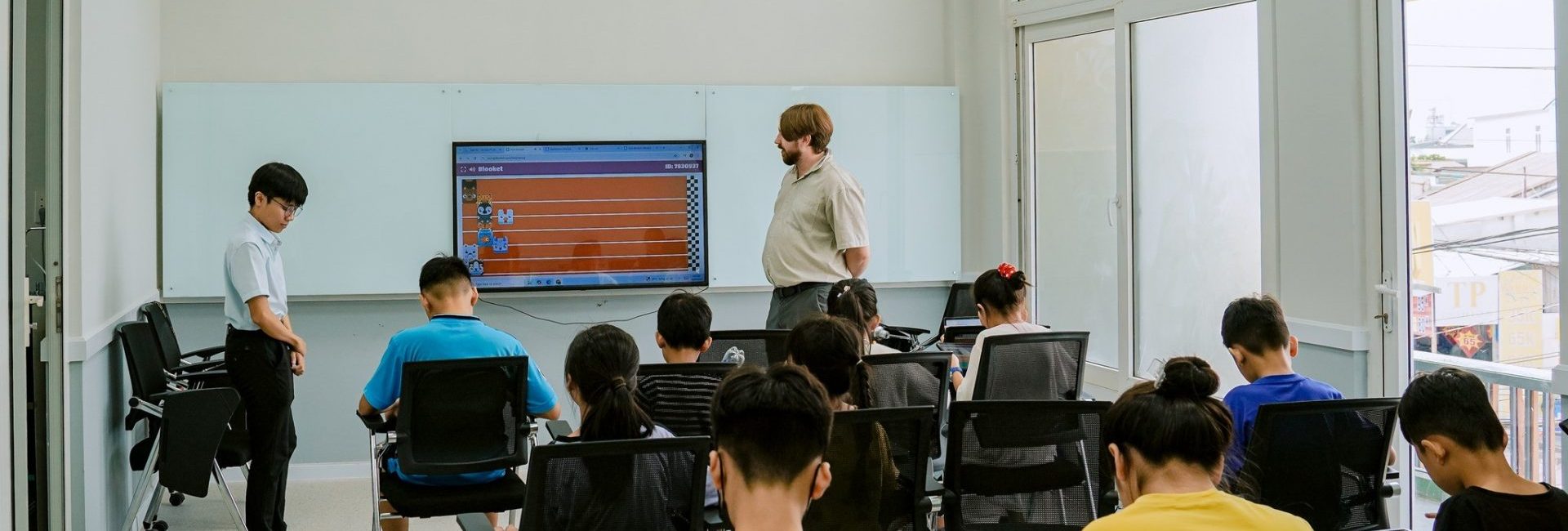- Phòng học được trang bị bảng tương tác, phần mềm thực hành đa chiều, kích thích hứng thú và duy trì tập trung cho học viên.