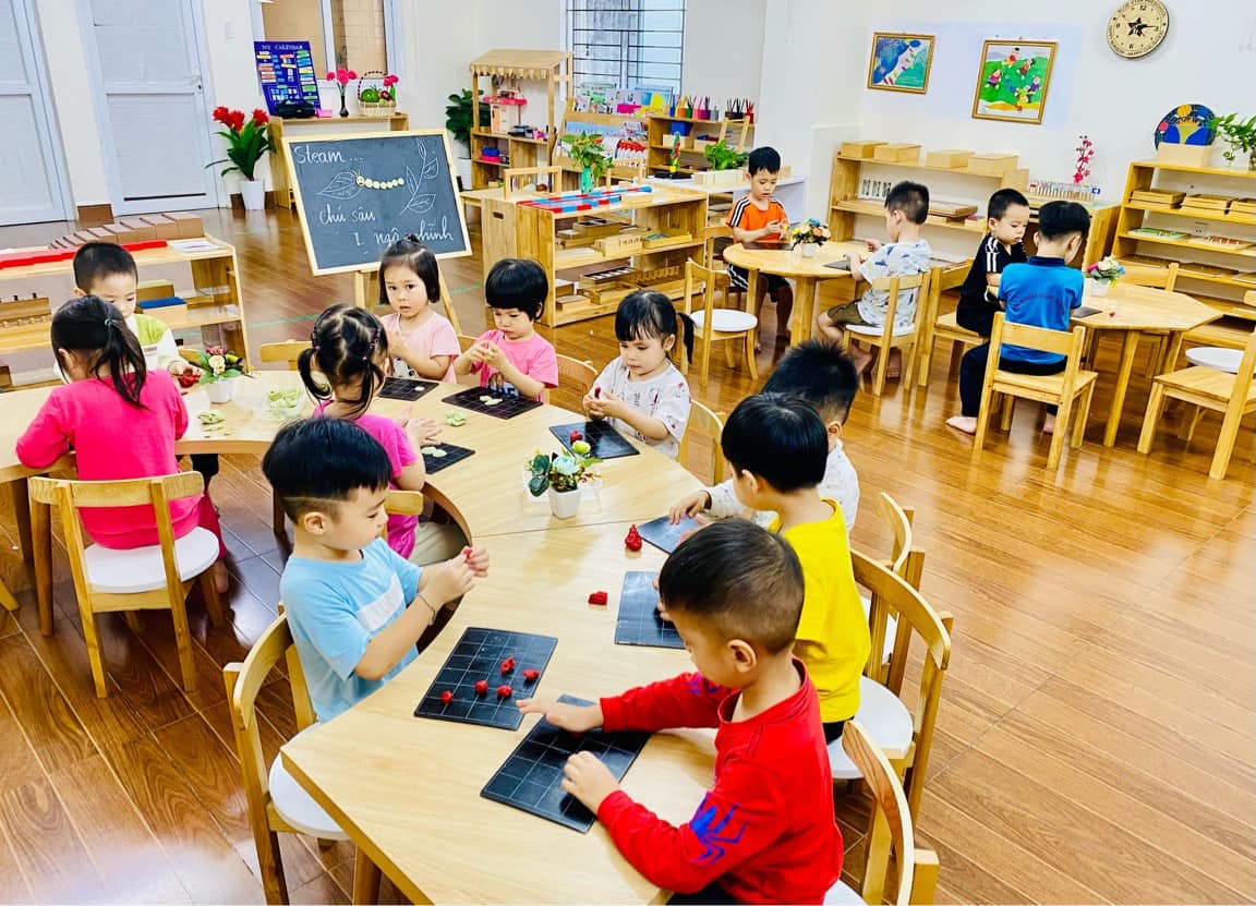 Phòng học Montessori và STEAM (Science, Technology, Engineering, Arts, and Mathematics) tại trường được trang bị đầy đủ các giáo cụ đạt tiêu chuẩn chất lượng nhằm hỗ trợ quá trình học tập theo phương pháp giáo dục tiên tiến. Điều này hỗ trợ trẻ phát triển toàn diện, từ khả năng tư duy đến kỹ năng thực hành, tạo nên nền tảng vững chắc cho sự thành công trong tương lai.