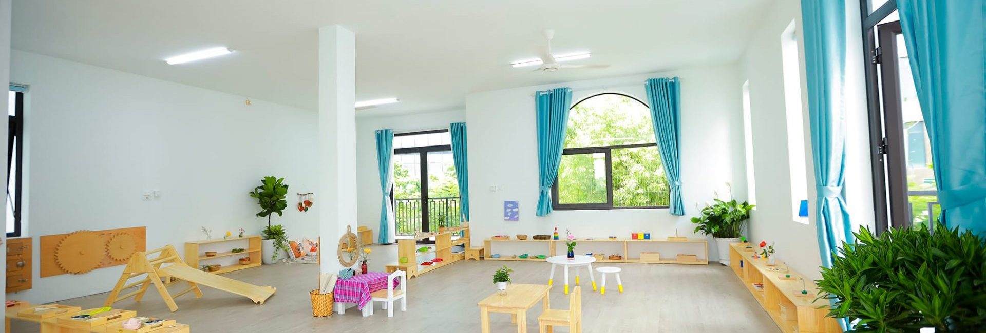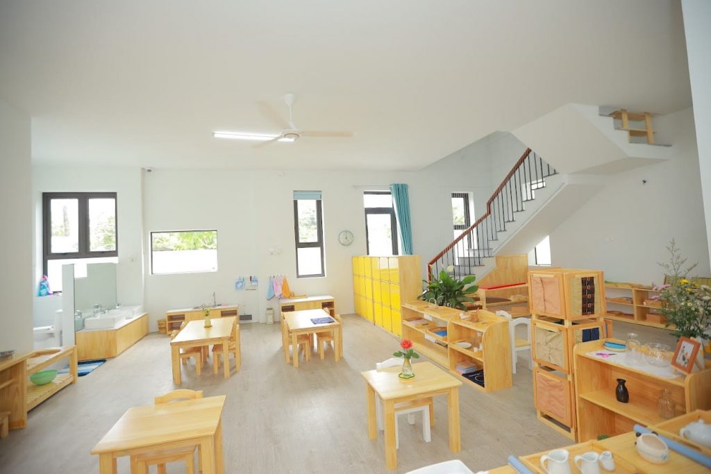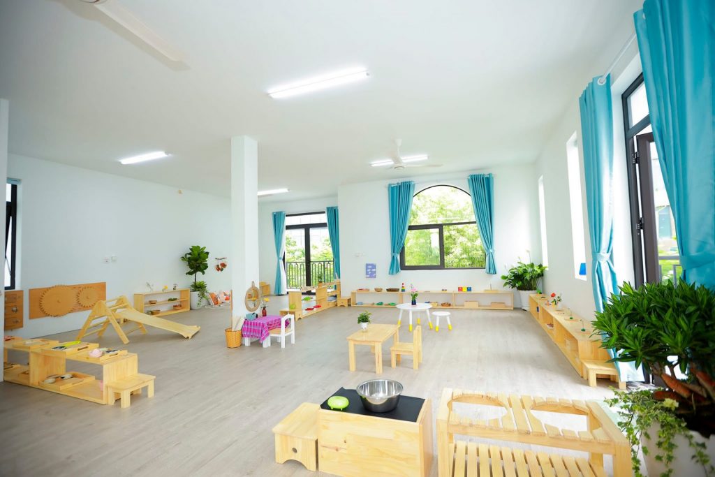 Hệ thống học cụ Montessori đạt chuẩn quốc tế được trang bị đầy đủ trong các lớp học rộng lớn từ 70m2 đến 100m2. Mỗi chi tiết được đặt vị trí một cách có tổ chức, tối ưu hóa không gian và khuyến khích sự tự chủ, sáng tạo của trẻ. Tất cả đều tuân thủ các tiêu chuẩn an toàn tiêu chuẩn Châu Âu, mang lại sự an tâm cho phụ huynh và giáo viên.