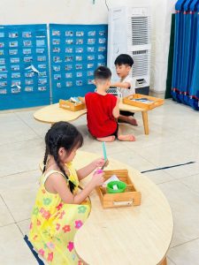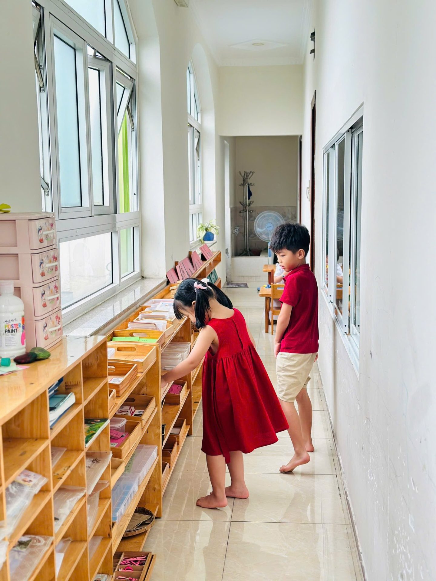 Bên cạnh phương pháp Montessori, nhà trường còn chú trọng các hoạt động trải nghiệm thực tế: trồng cây, tham gia trò chơi vận động, thủ công mỹ thuật… tạo điều kiện cho trẻ như học mà chơi – chơi mà học. Trường hướng tới việc hỗ trợ trẻ phát triển đa giác quan, tư duy logic, kỹ năng hợp tác và khả năng tự phục vụ, những yếu tố quan trọng cho hành trình trưởng thành.