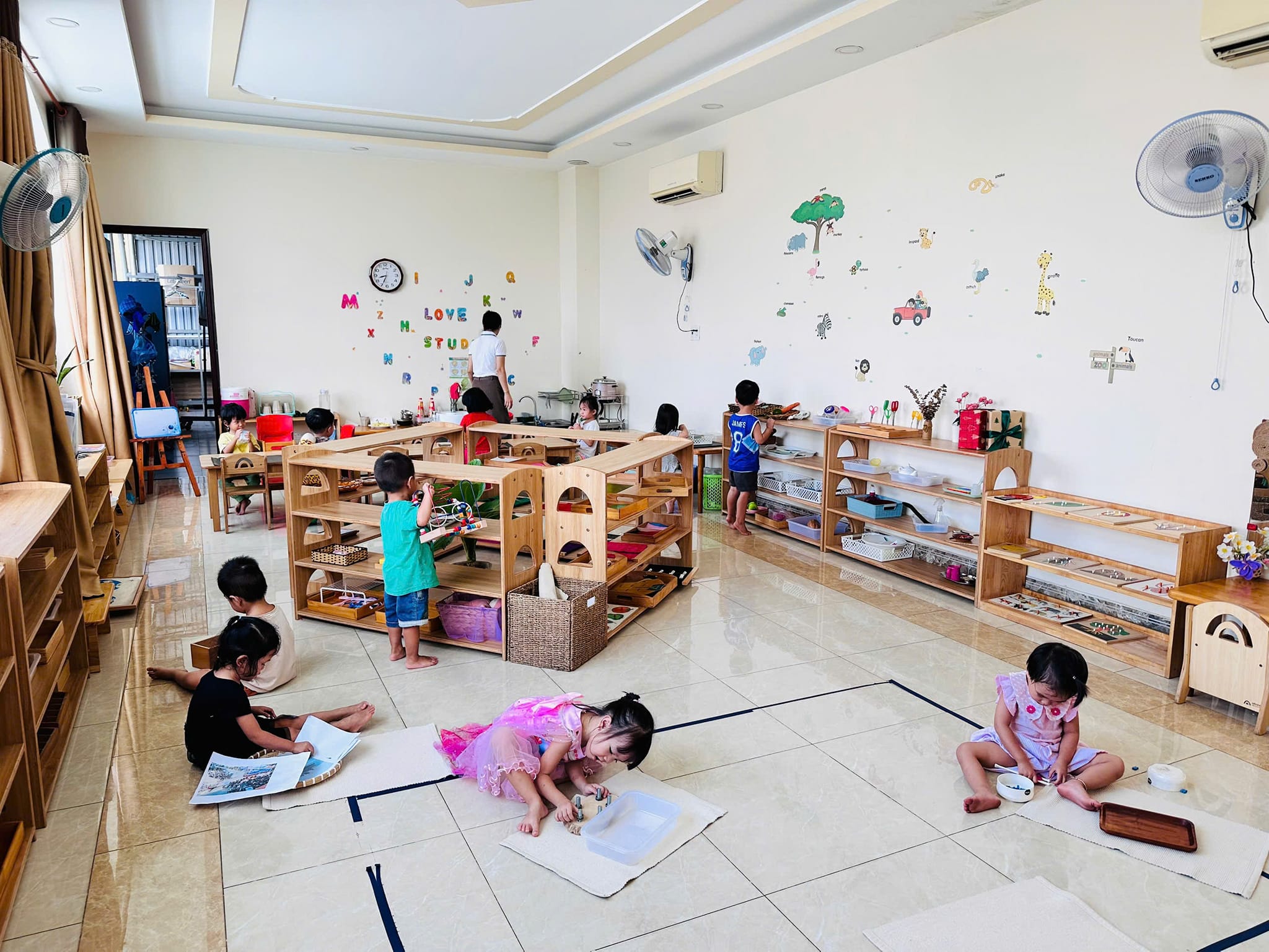 Hệ thống lớp học rộng rãi, thoáng mát, tràn ngập ánh sáng tự nhiên được trang bị đầy đủ giáo cụ Montessori đạt chuẩn quốc tế, cho trẻ tự do lựa chọn và học tập theo hứng thú. Ngoài ra, nhà trường còn có sân chơi trong nhà và ngoài trời thiết kế đa dạng hoạt động: khu leo núi mini, cầu trượt, sân cát, khu vườn nhỏ cho trẻ khám phá thiên nhiên.