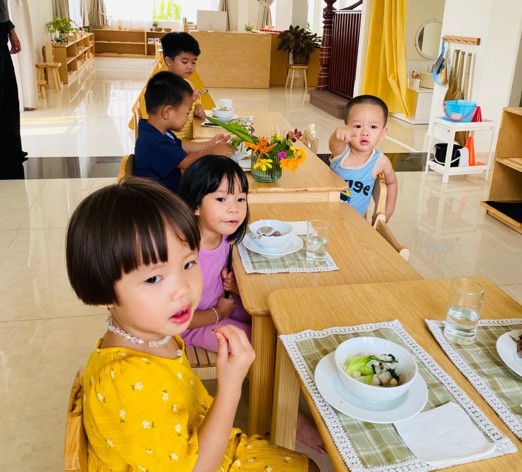 - Sự tự do khi chọn lựa học cụ theo hứng thú hoặc chọn ăn nhiều một chút, uống ít một chút. Sự tự do khiến trẻ tự tin trải nghiệm, khám phá nhiều hơn, giúp trẻ trao đổi và giao tiếp với các cô và các bạn nhiều hơn.