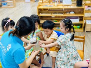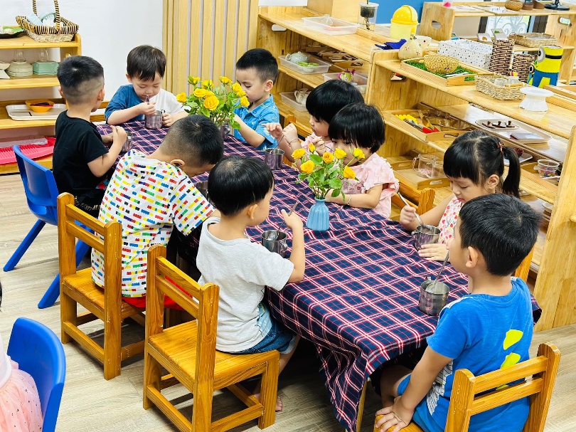 Các buổi sáng trong tuần được dành riêng cho chương trình Montessori, nơi trẻ khám phá thế giới xung quanh thông qua 5 góc hoạt động: thực hành cuộc sống, giác quan, toán học, góc ngôn ngữ, lịch sử, địa lý, khoa học và nghệ thuật.