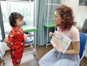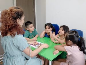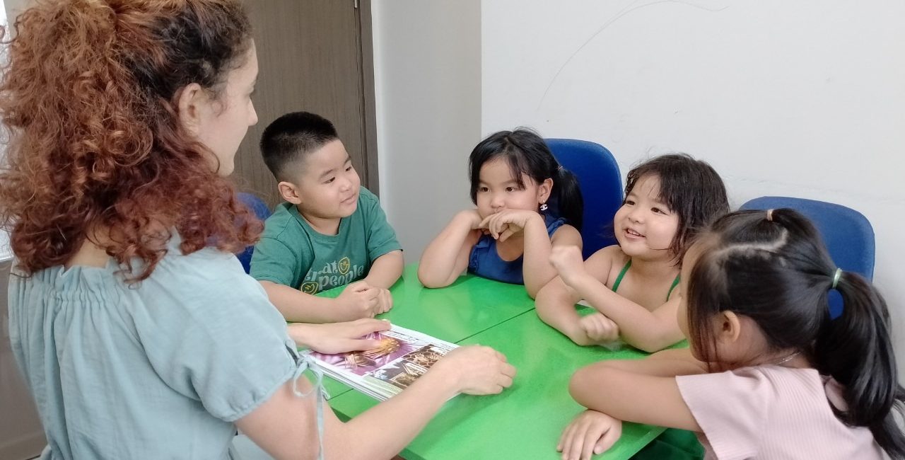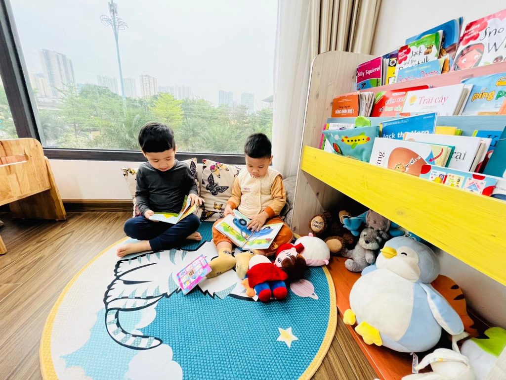 Chủ đề đa dạng, gần gũi với thế giới của trẻ như Màu sắc, Số đếm, Hình dạng, Trường học, Gia đình, và nhiều chủ đề khác đều được áp dụng triệt để. Việc học từ vựng và cấu trúc ngôn ngữ được thực hiện thông qua các hoạt động sáng tạo như bài hát, kể chuyện, diễn kịch, Storytelling (kể chuyện), Show and Tell (dành cho nhóm 3 – 4 – 5 tuổi), và Mock Interview (Phỏng vấn 1-1 giữa Giáo viên và Trẻ). Các hoạt động này hỗ trợ trẻ tiếp xúc với ngôn ngữ một cách tự nhiên và thúc đẩy sự tương tác đa dạng, giúp trẻ phát triển toàn diện về kỹ năng Tiếng Anh.