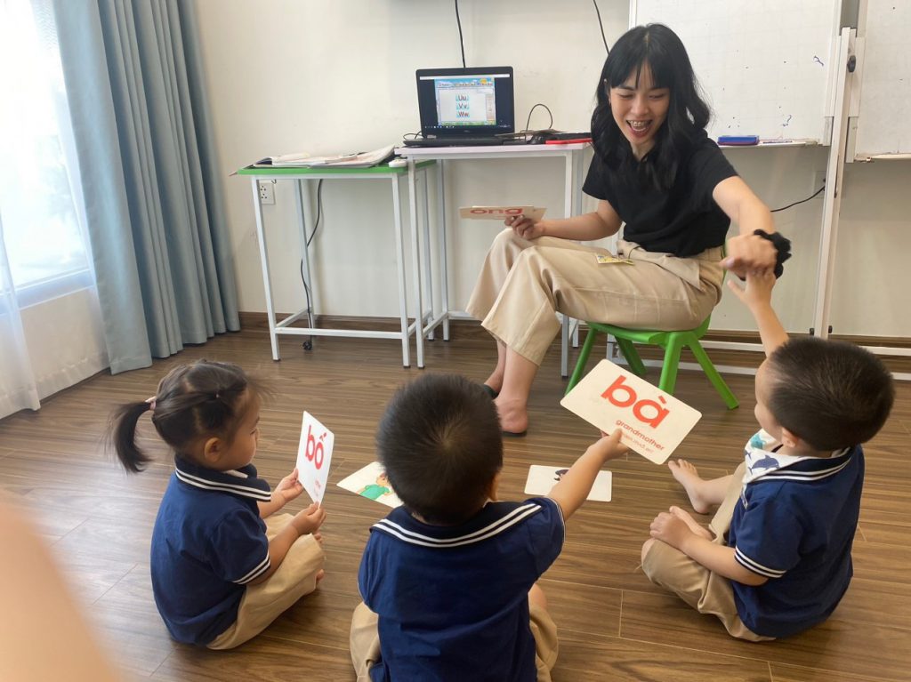 Không quên chương trình Tiếng Việt, Grit Prep cam kết giúp trẻ phát triển khả năng ngôn ngữ một cách đồng đều và toàn diện. Việc học Tiếng Việt không chỉ là quá trình chuyển đạt thông tin mà còn là cơ hội để trẻ tìm hiểu về văn hóa, lịch sử và giữ gìn bản sắc dân tộc.