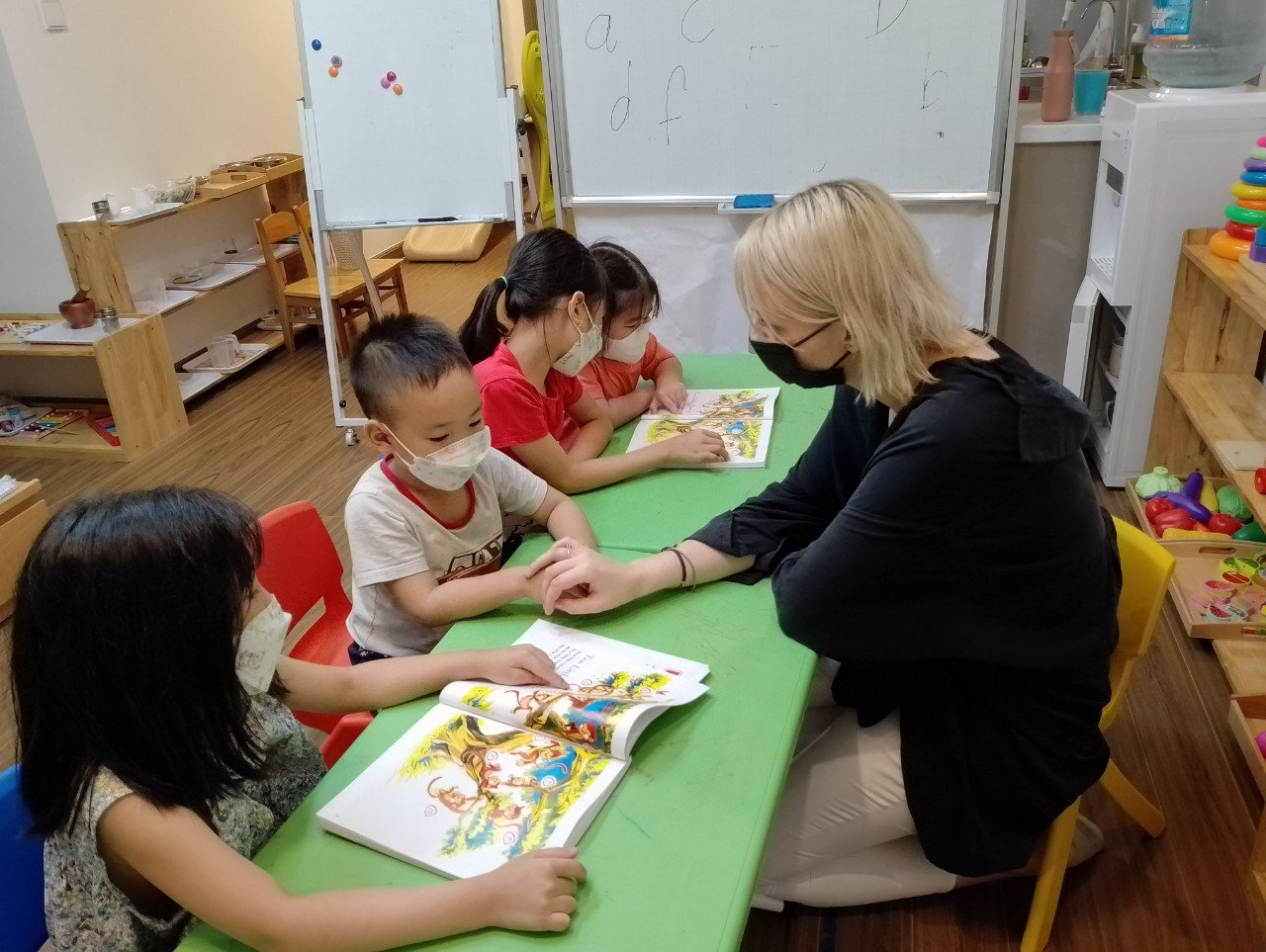 Lớp học tại đây không đơn giản là nơi học tập, mà còn là một không gian năng động và sáng tạo. Mỗi bạn nhỏ được khuyến khích tham gia vào các hoạt động như làm việc tại một xưởng thợ, nơi mỗi trẻ đảm nhận một nhiệm vụ cụ thể. Sự ngăn nắp và tôn trọng được coi là quan trọng đối với công việc cá nhân và trong mối quan hệ với bạn bè và giáo viên.