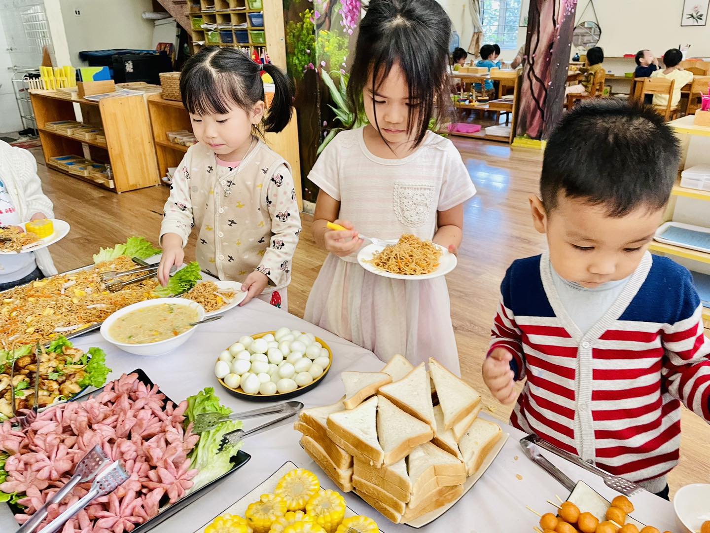 Chế độ ăn uống đa dạng, sử dụng phương pháp chế biến như nấu chín, hấp hoặc xào để giữ lại giá trị dinh dưỡng và hương vị tốt nhất. Mục tiêu của nhà trường không chỉ là cung cấp đủ chất dinh dưỡng mà còn là giáo dục về lối sống ăn uống lành mạnh và an toàn từ khi còn nhỏ, hỗ trợ sự phát triển toàn diện của trẻ về mặt thể chất và tinh thần.