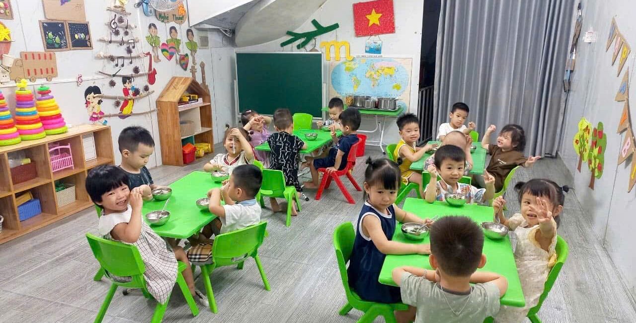 Trường cung cấp bữa sáng giàu dinh dưỡng, đảm bảo bé có đủ năng lượng để bắt đầu hành trình khám phá. Dịch vụ đón muộn linh hoạt và trông thứ Bảy hỗ trợ gia đình trong những ngày bận rộn.