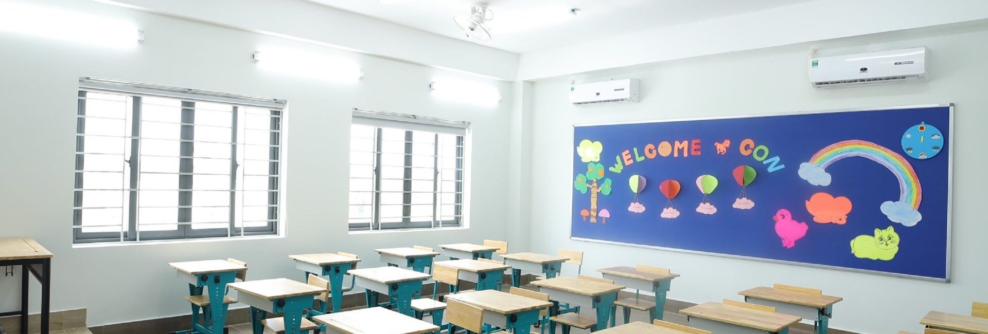 - Hệ thống phòng học mới, hiện đại, thoáng mát trang bị đầy đủ các thiết bị học tập hiện đại như máy lạnh, tivi, dụng cụ học tập.