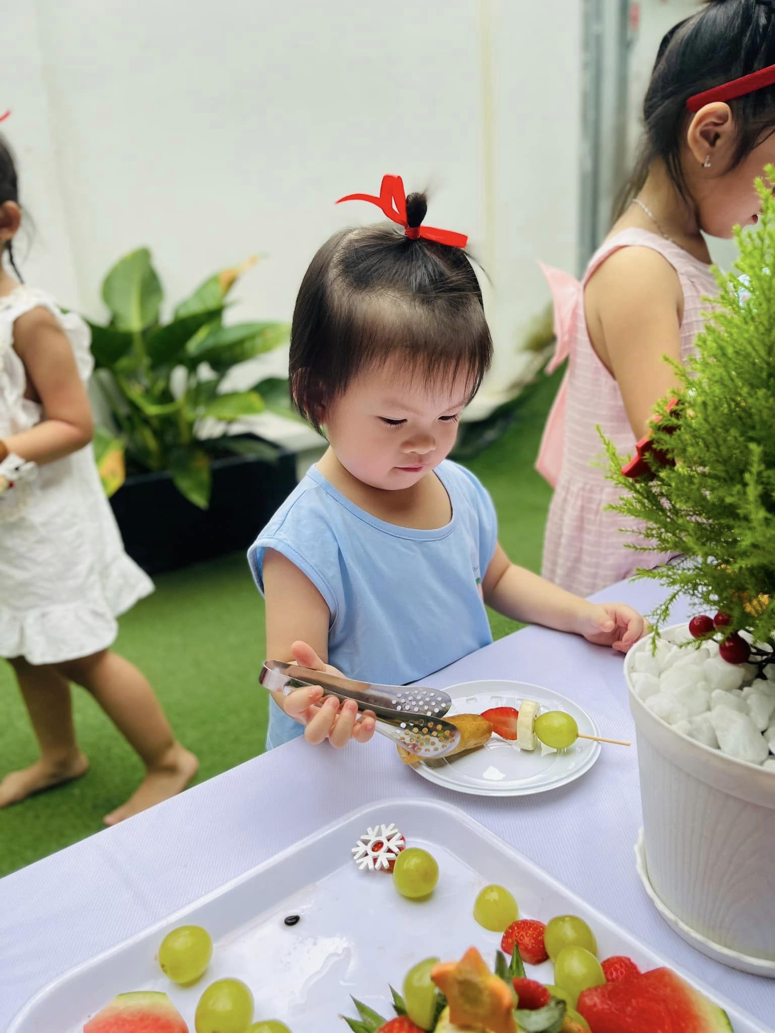 Mỗi bữa ăn là một trải nghiệm vui vẻ, tràn đầy động viên và khích lệ. Trẻ được lắng nghe những câu chuyện thú vị về món ăn, cách chế biến, nguồn gốc, màu sắc và công dụng của từng loại thực phẩm. Giáo viên hướng dẫn trẻ ngồi đúng tư thế, cách cầm thìa và dọn dẹp bàn ghế sau khi ăn xong, tạo ra một bữa ăn vừa bổ ích vừa thú vị.