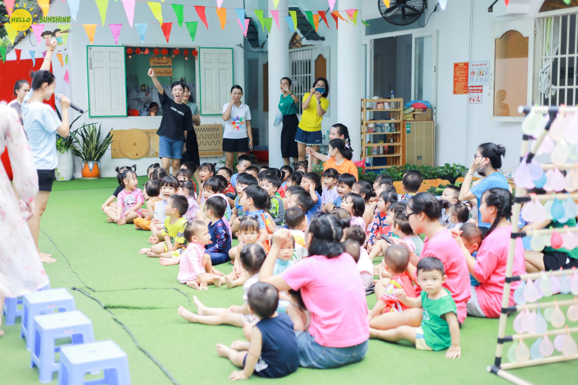 Đội ngũ giáo viên tại Hello Sunshine được tuyển chọn kỹ lưỡng, sở hữu chuyên môn vững vàng và trái tim nhiệt huyết dành cho giáo dục trẻ. Giáo viên không chỉ đơn thuần là người hướng dẫn, mà còn là những người bạn đồng hành tận tâm, luôn chăm sóc và cùng tạo dựng một môi trường tích cực để trẻ phát triển toàn diện.