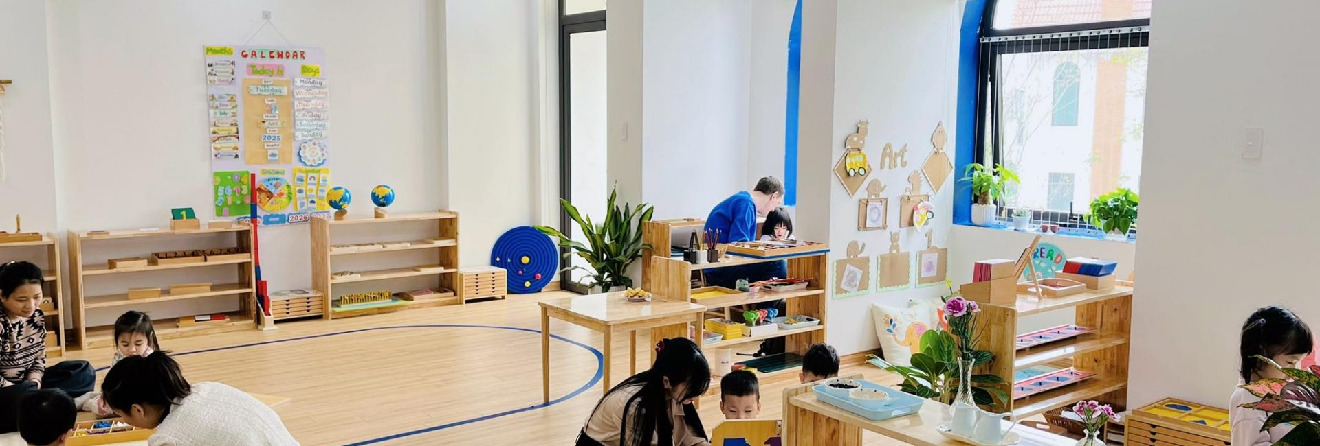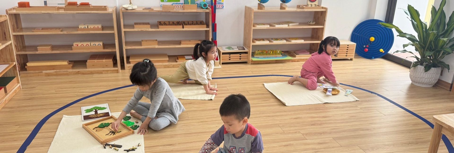 - Không gian định hướng: Lớp học được sắp xếp khoa học, hỗ trợ phát triển sự tập trung và tính tự chủ.