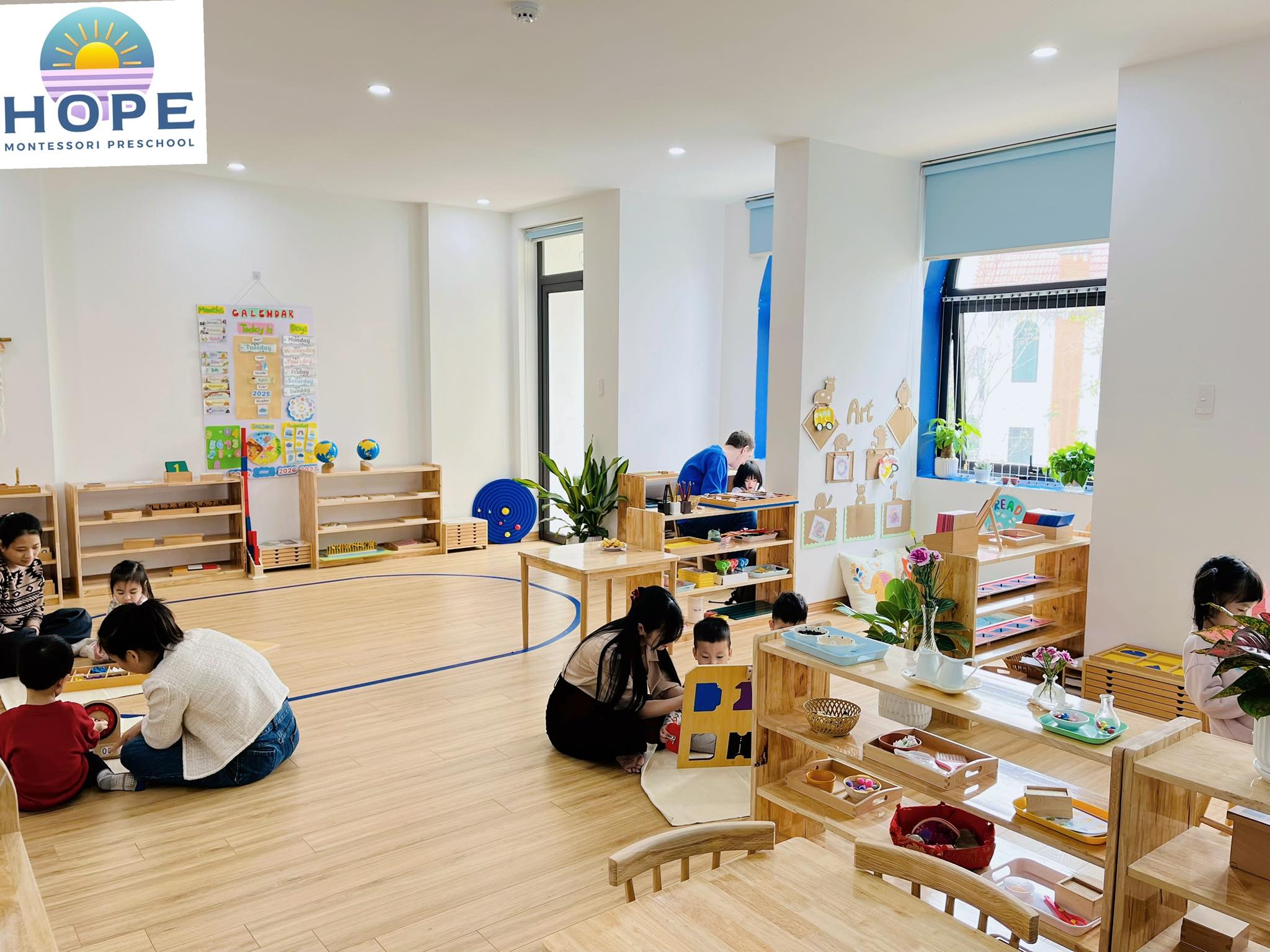 Hope Montessori Preschool được thiết kế với không gian học tập rộng rãi, ngập tràn ánh sáng tự nhiên – một yếu tố quan trọng giúp trẻ phát triển toàn diện cả thể chất lẫn tinh thần.