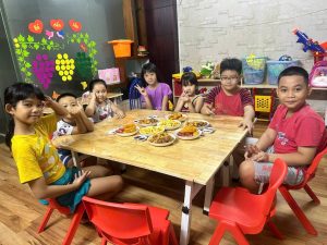 - Các bé được cung cấp 3 – 4 bữa ăn gồm: bữa sáng, bữa trưa, bữa xế và có buổi tối ( theo nhu cầu của phụ huynh)