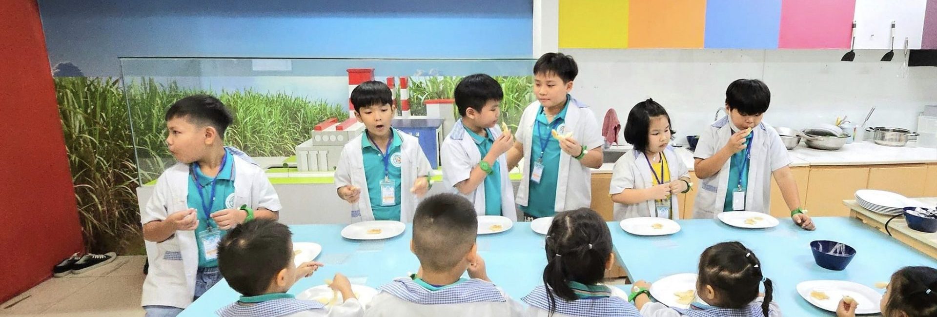 Lớp Mầm Non Thiên Thần Nhỏ đặc biệt chú trọng đến chế độ dinh dưỡng, đảm bảo cung cấp đầy đủ và cân đối các dưỡng chất cần thiết cho sự phát triển của trẻ. Chương trình ẩm thực tại trường bao gồm 1 bữa sáng, 1 bữa trưa và 1 bữa xế, được thiết kế khoa học và thay đổi hàng tuần để mang lại sự phong phú và hấp dẫn. Nguyên liệu chế biến luôn tươi ngon, an toàn và có nguồn gốc rõ ràng, trẻ không chỉ phát triển khỏe mạnh mà còn hình thành thói quen ăn uống lành mạnh ngay từ nhỏ.