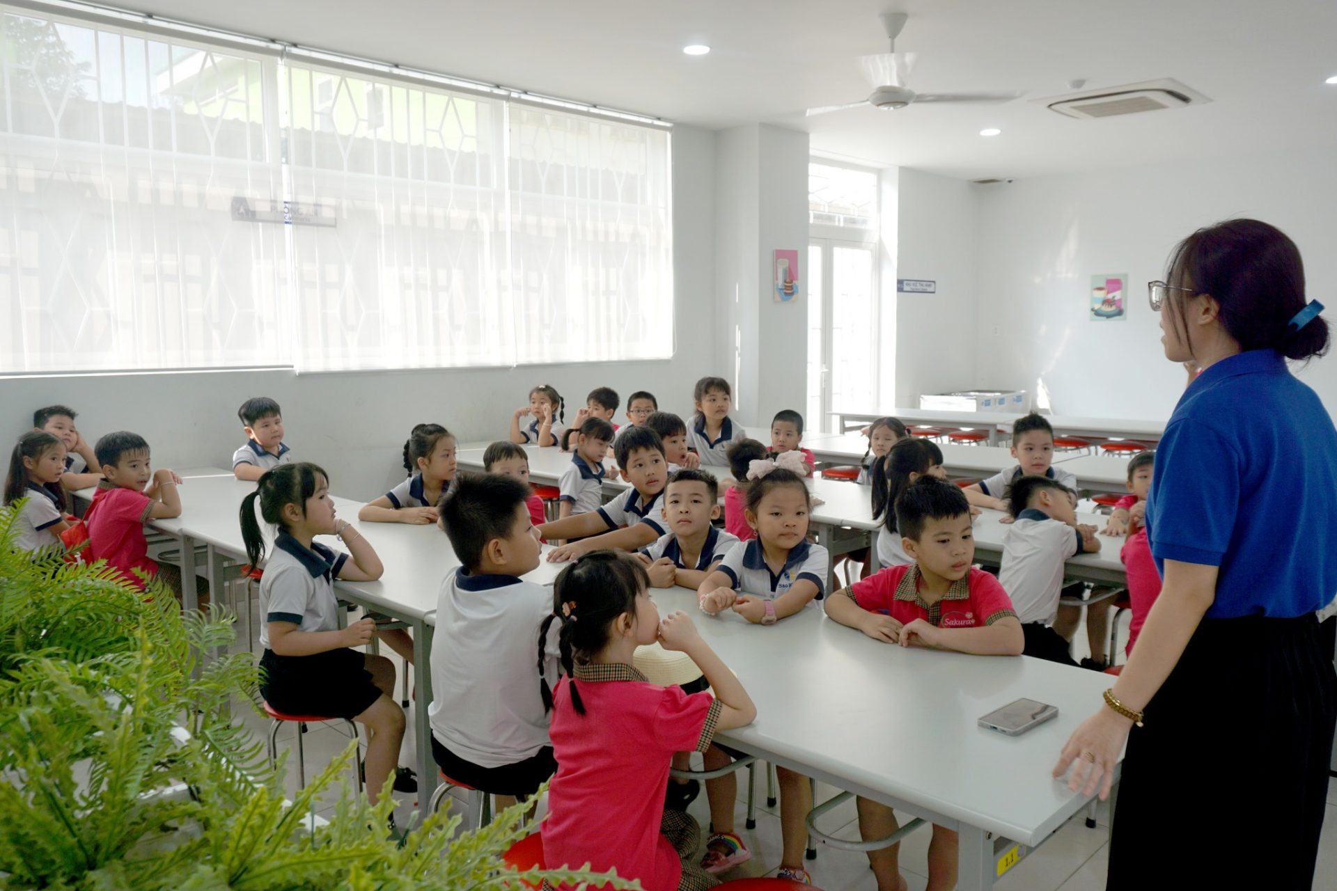 Mầm non Anh Đào có không gian lớp học rộng rãi từ 50m² đến 100m², được thiết kế thông thoáng và trang bị đầy đủ thiết bị hiện đại. Trường còn có sân chơi ngoài trời với bóng mát cây xanh và hồ bơi an toàn, cùng với hệ thống camera giám sát tiên tiến đảm bảo an ninh cho trẻ. Với thiết kế tối ưu ánh sáng và gió tự nhiên, các lớp học tại Mầm non Anh Đào không chỉ thân thiện với môi trường mà còn tạo điều kiện lý tưởng cho sự phát triển của trẻ.