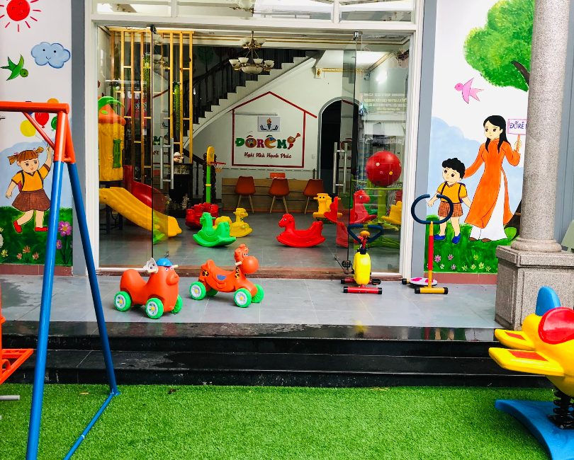 Mầm non Đồ Rê Mí được xây dựng với nhiều phòng học rộng rãi thoáng mát, sân chơi ngoài trời, sân chơi trong nhà với đầy đủ đồ dùng, đồ chơi cho con.