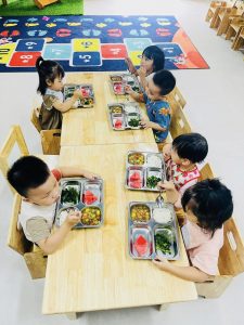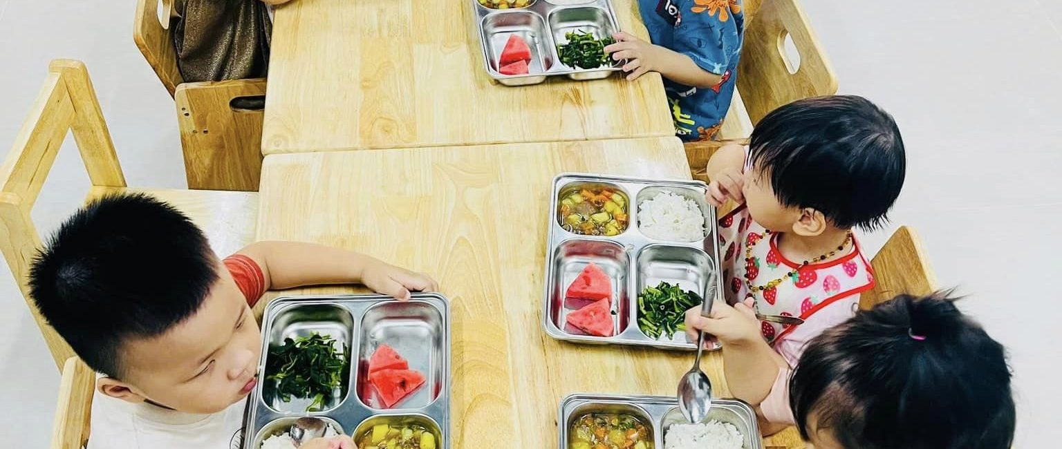 Dream House đặc biệt chú trọng đến dinh dưỡng, nhằm đảm bảo mỗi trẻ có một chế độ ăn uống cân đối và lành mạnh. Thực đơn hàng ngày được xây dựng khoa học, sử dụng nguyên liệu tươi ngon và an toàn, cung cấp đầy đủ dưỡng chất cần thiết. Mỗi bữa ăn đều được được trang trí hấp dẫn, khuyến khích trẻ ăn ngon miệng và hình thành thói quen ăn uống lành mạnh từ sớm.