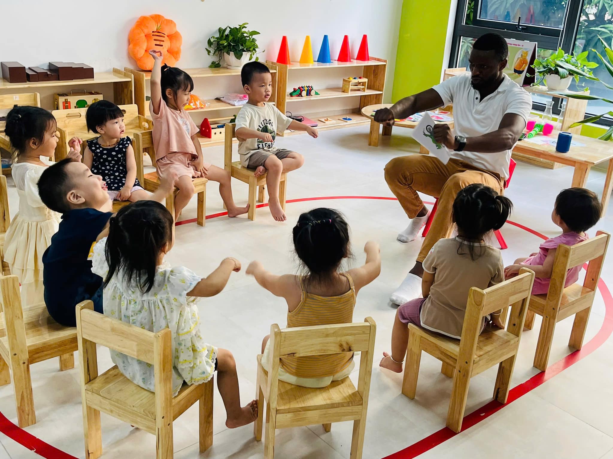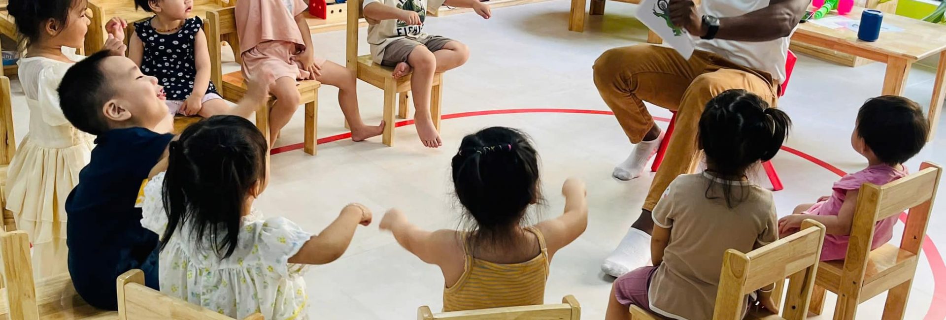 Giờ học Tiếng Anh tại Dream House được thiết kế sinh động và cuốn hút với sự hướng dẫn tận tình của giáo viên bản ngữ. Qua các hoạt động tương tác và giao tiếp tự nhiên, trẻ không chỉ học từ vựng và ngữ pháp mà còn phát triển kỹ năng nghe, nói một cách tự tin ngay từ những năm tháng đầu đời. Với phương pháp giảng dạy truyền cảm hứng, Dream House giúp trẻ tiếp cận Tiếng Anh một cách tự nhiên và thoải mái, tạo nền tảng vững chắc cho hành trình học tập sau này.
