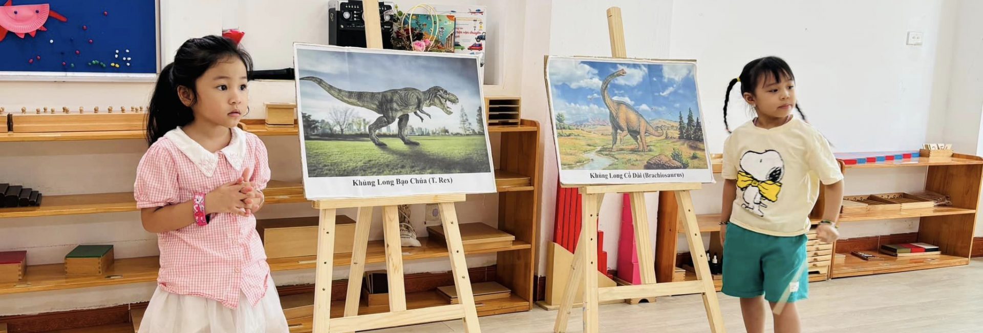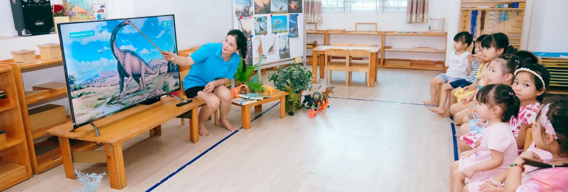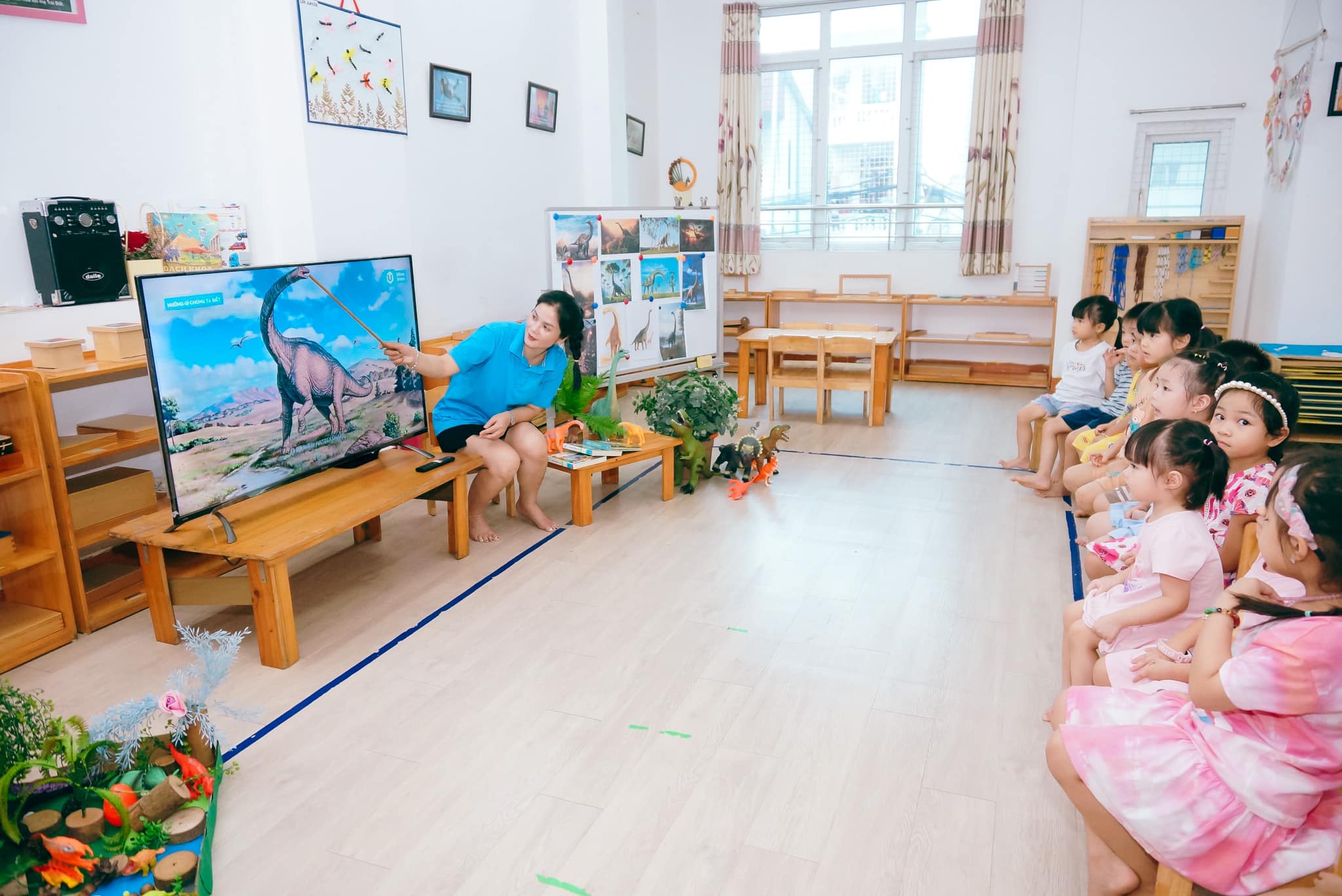 - Khuôn viên xanh, mát gần gũi thiên nhiên, các lớp học trang bị thiết bị học tập, đồ dùng, đồ chơi giáo cụ theo PP Montessori, Reggio Emillia