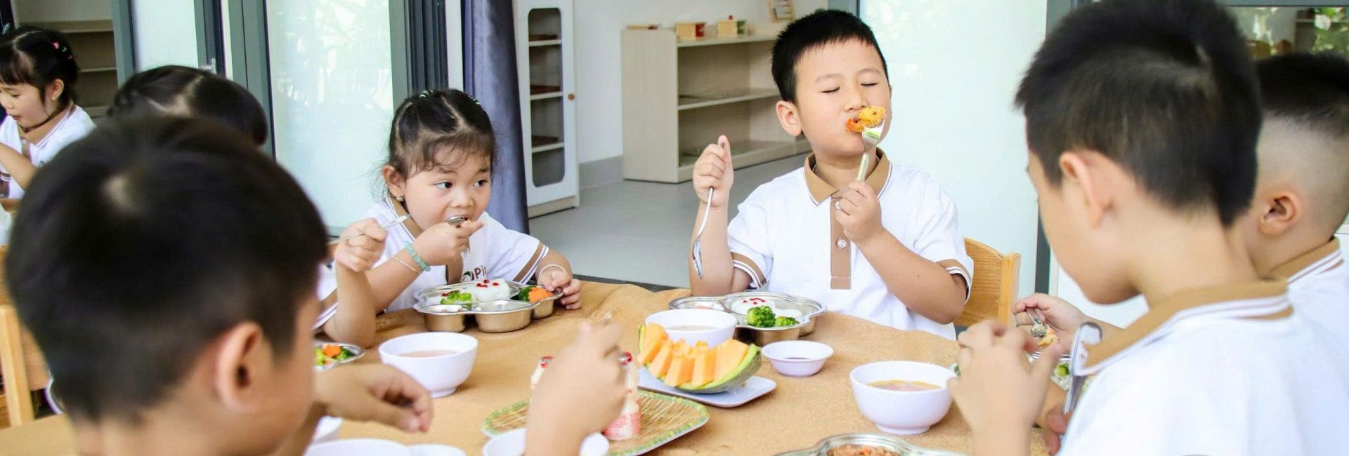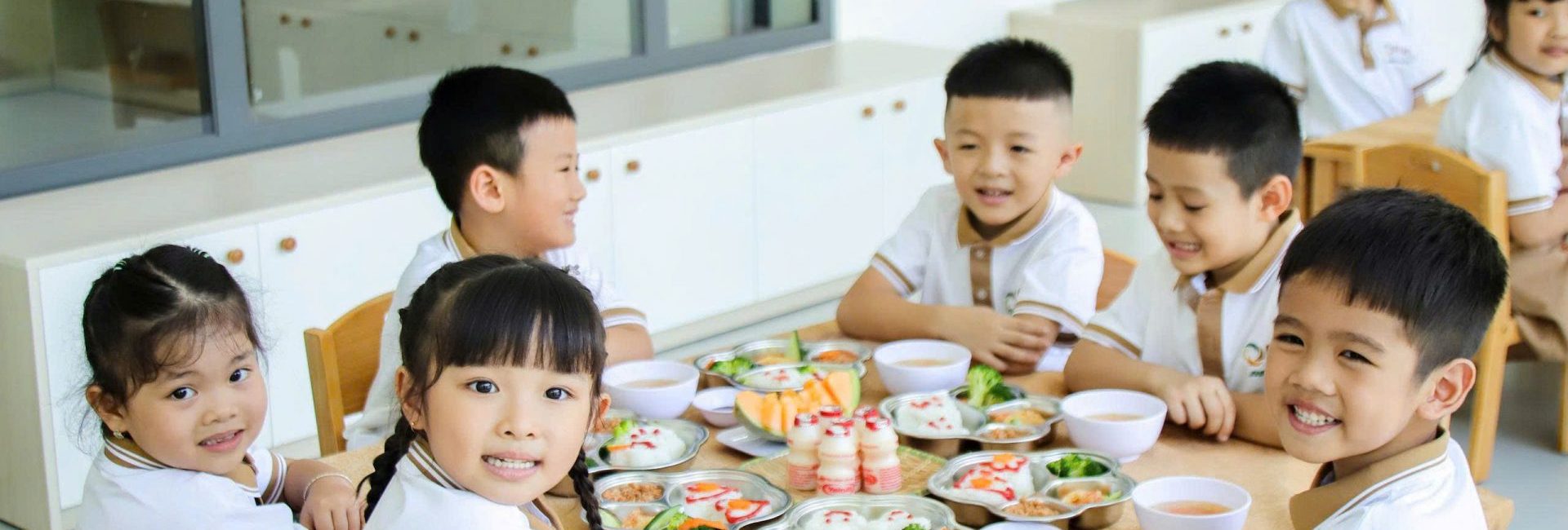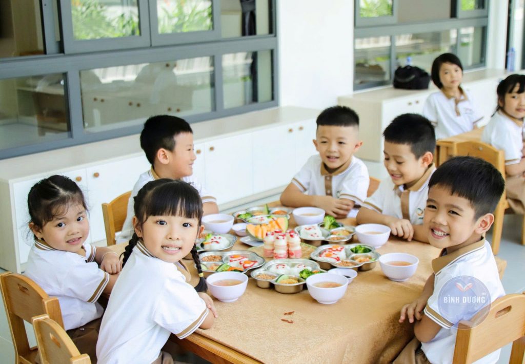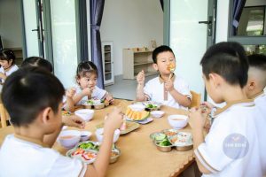 Mỗi bữa ăn không chỉ ngon miệng mà còn được trình bày đẹp mắt, tạo hứng thú cho trẻ và hỗ trợ hình thành thói quen ăn uống lành mạnh, tích cực. Trẻ được khuyến khích tự xúc ăn, giữ vệ sinh, nhận biết thực phẩm lành mạnh, thông qua các hoạt động giáo dục dinh dưỡng lồng ghép trong sinh hoạt hàng ngày. Không gian ăn uống sạch sẽ, thân thiện và không ép buộc tạo điều kiện cho trẻ thoải mái, vui vẻ trong mỗi bữa ăn.