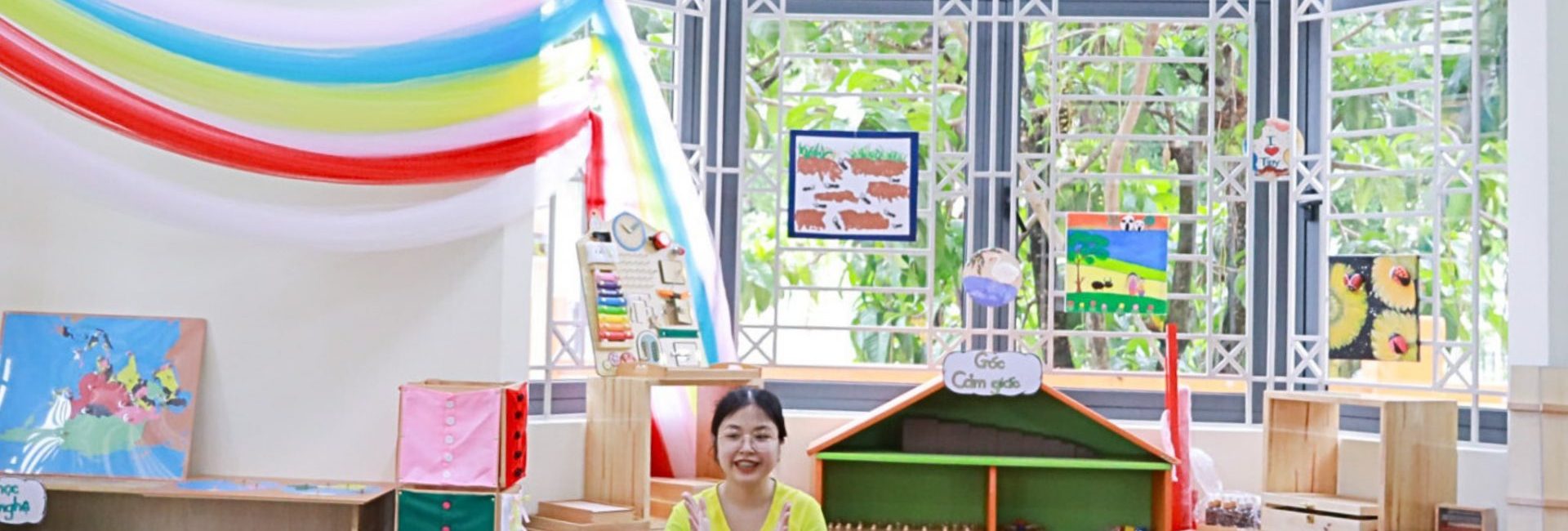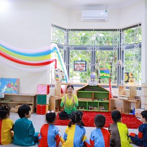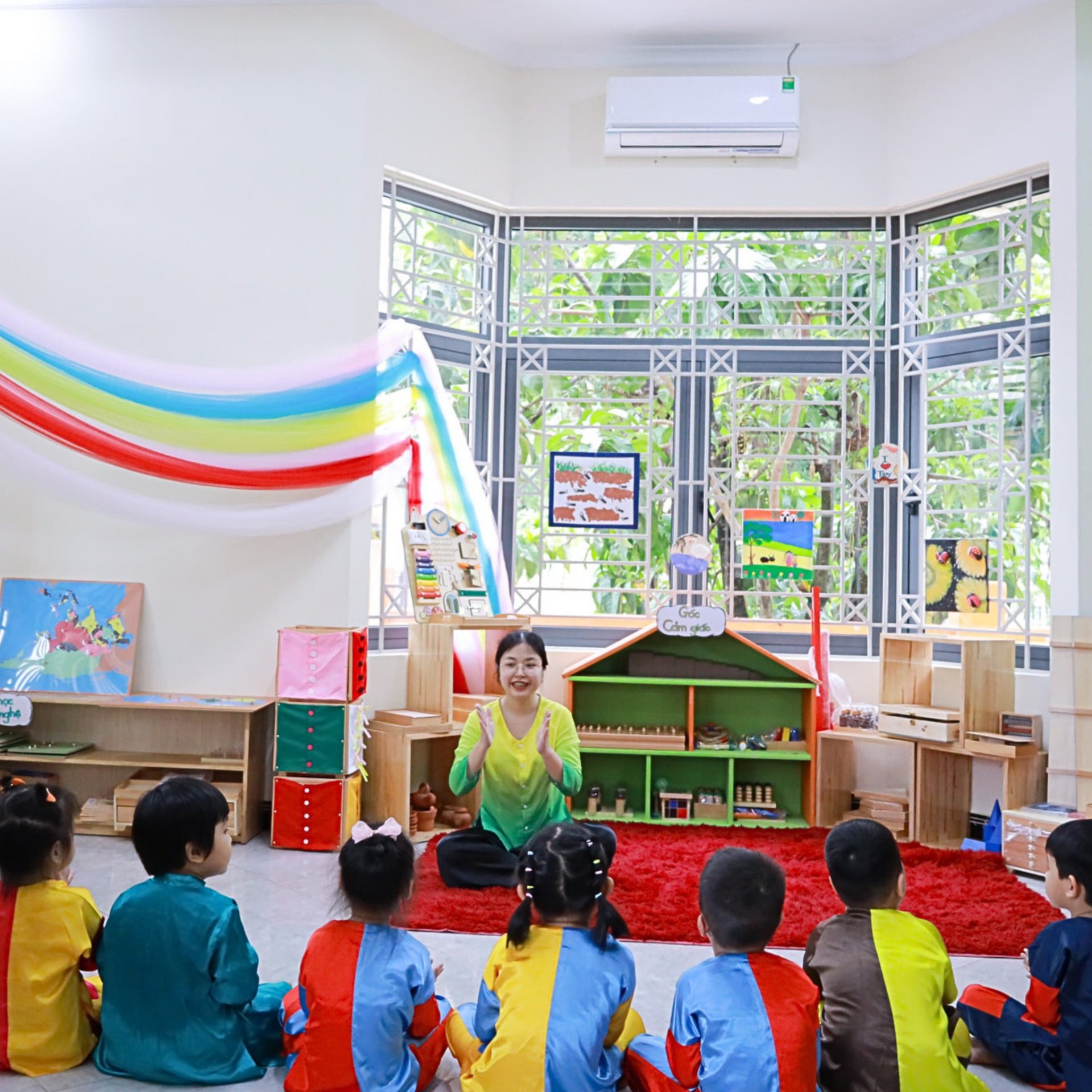- Phòng học được thiết kế thoáng đãng với ánh sáng tự nhiên chan hòa, mang đến không gian học tập lý tưởng cho trẻ. Tại đây, các bé được trải nghiệm phương pháp giáo dục hiện đại với giáo cụ Montessori nhập khẩu trực tiếp từ Nhật Bản, giúp phát triển toàn diện cả tư duy lẫn kỹ năng. Những căn phòng đầy màu sắc được bài trí gọn gàng, phù hợp với từng lứa tuổi. Phòng chơi là thế giới của trí tưởng tượng với đồ chơi an toàn, kích thích sự sáng tạo. Phòng ăn sạch sẽ và ấm cúng, các bé cùng nhau thưởng thức những bữa ăn đầy đủ dinh dưỡng.
