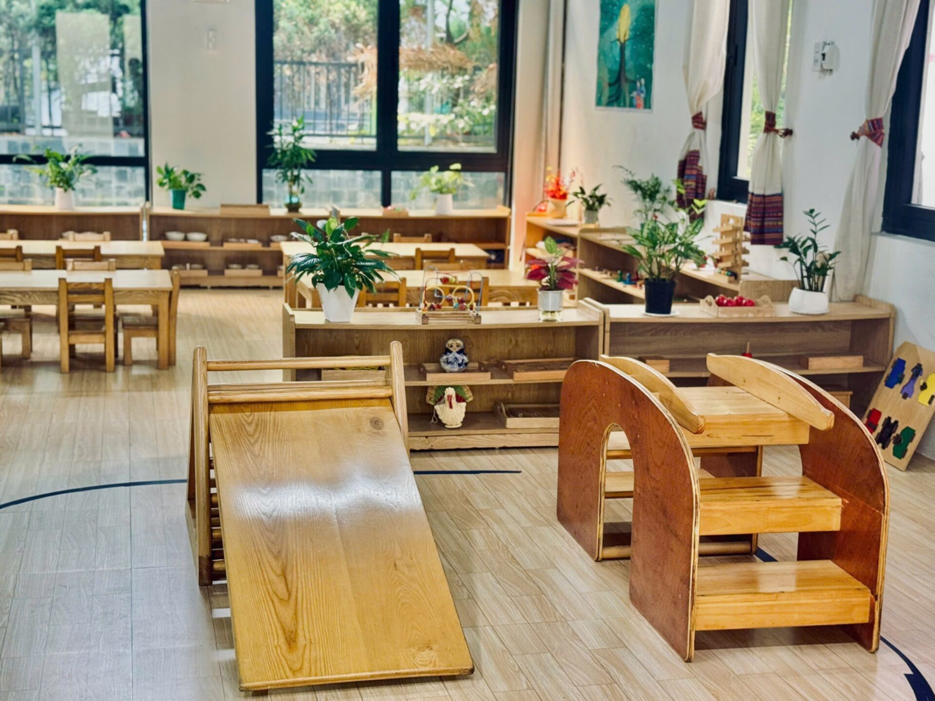 Mỗi lớp học của Mầm Non Maya Lào Cai Montessori – Phường Cam Đường có diện tích từ 80m2 / lớp với 3 mặt thoáng tràn ngập ánh sáng tự nhiên, cây xanh và hoa tươi trong lớp học. Lớp học được trạng bị đầy đủ hệ thống giáo cụ Mon nhập khẩu chuẩn quốc tế đảm bảo chất lượng xuất Châu Âu.