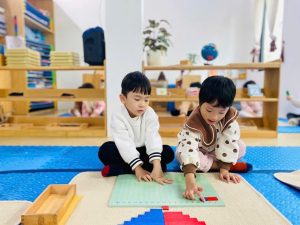 - Toán học: Trẻ hiểu biểu tượng, lượng, khái niệm toán qua giáo cụ, nắm nguyên lý hệ thập phân, thực hiện phép tính dễ dàng.