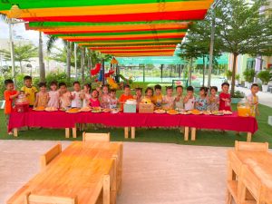 Thường xuyên tổ chức dã ngoại, sự kiện, cuộc thi tạo sân chơi và cơ hội cho các con thể hiện bản thân cũng như mở rộng giao tiếp với bạn bè cùng tuổi và các anh chị lớn hơn trong và ngoài trường. Dịch vụ trông muộn: đến 7h30 tối (20.000 đồng/giờ)