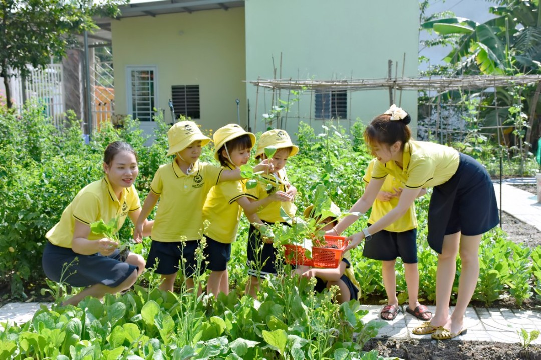 - Vườn hoa và rau ăn lá: Nằm cạnh sân chơi ngoài trời để các con trải nghiệm thực tế và hòa mình với thiên nhiên.