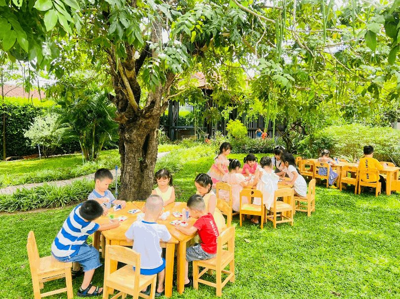 - Mầm non có khuôn viên cây xanh, vườn hoa, vườn rau sạch rộng rãi, đảm bảo chương trình hoạt động ngoài trời hàng ngày, học thông qua trải nghiệm thực tế, gần gũi với thiên nhiên cho trẻ.