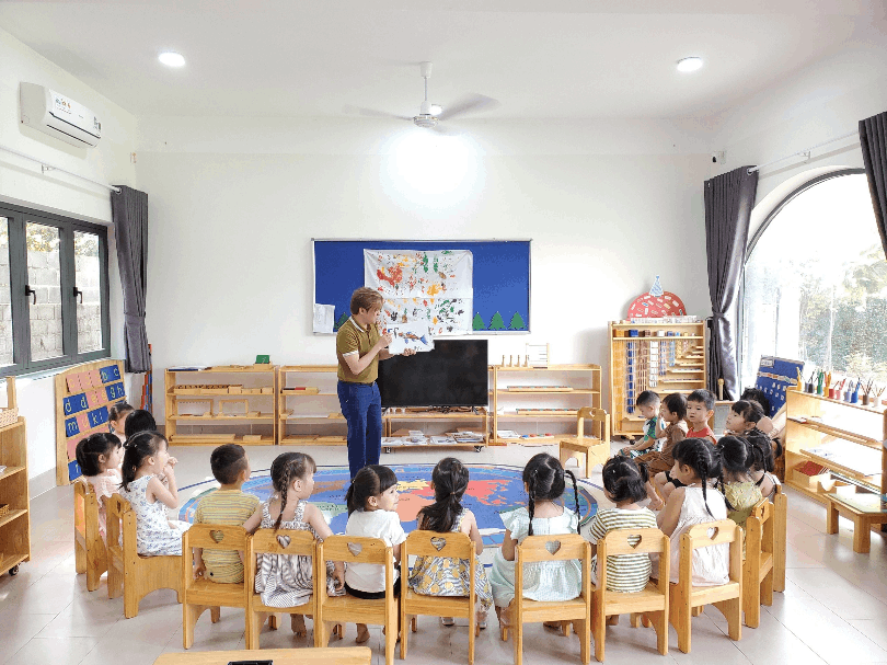 Giáo viên được đào tạo phương pháp Montessori bài bản.