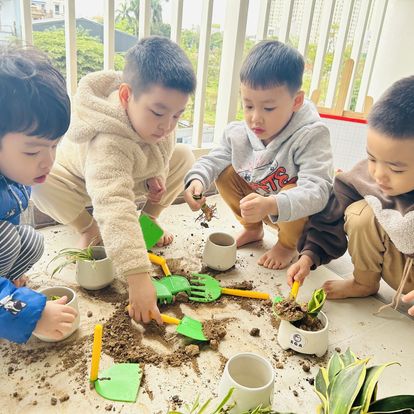 - Hệ thống sân vườn xanh mát, thân thiện với đã dạng loại cây giúp trẻ gần gũi với thiên nhiên và là góc nhỏ để trẻ cùng nhau chăm sóc mỗi ngày.