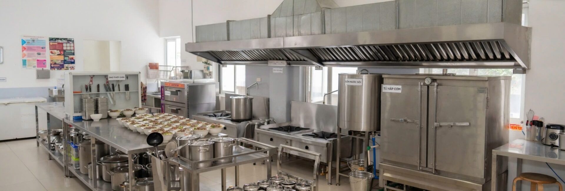 Ở trường, các bạn nhỏ sẽ sử dụng thực đơn không trùng lặp món ăn trong tháng với nhiều hương vị, trải nghiệm ẩm thực khác nhau, kích thích vị giác và phát triển thói quen ăn uống lành mạnh của trẻ. Bếp ăn một chiều “inox hóa” của trường tự tin đảm bảo 4 tiêu chí cho một thực đơn khoa học và an toàn, đó là: