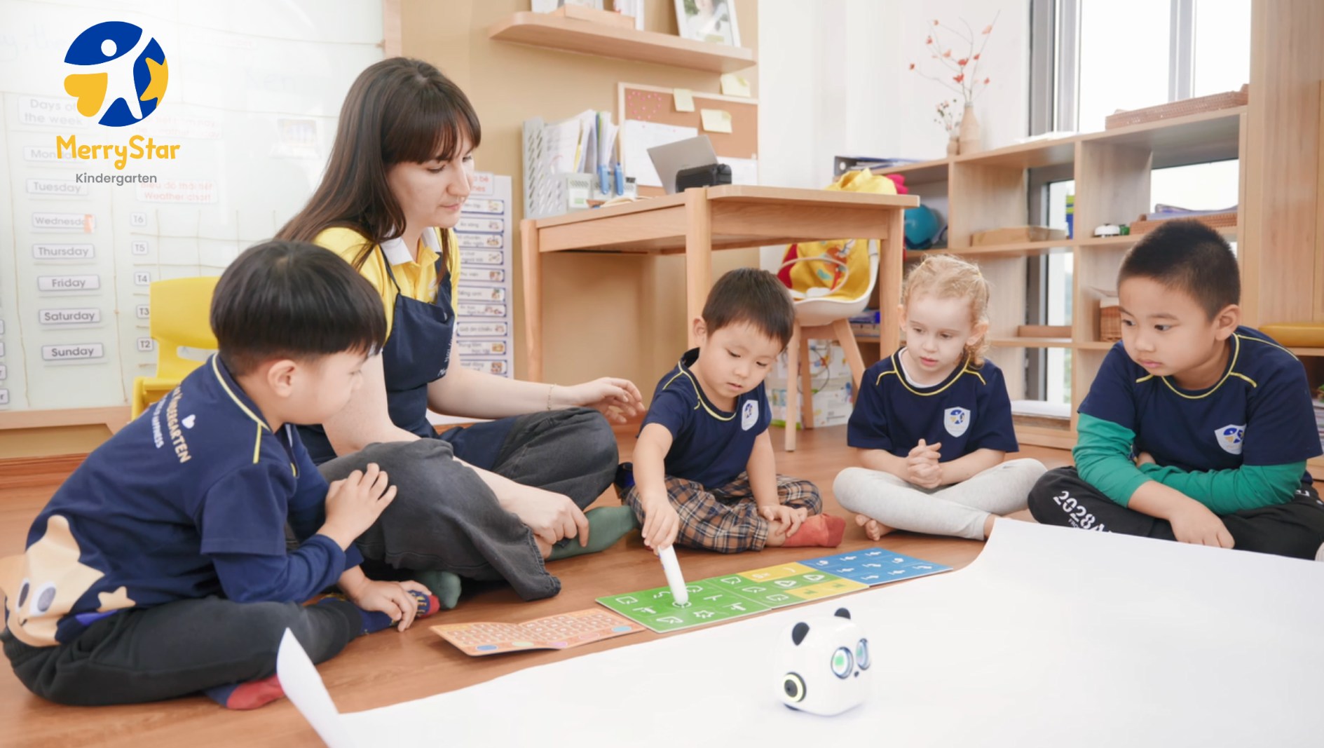 MerryStar Kindergarten là ngôi trường Mầm non tiên phong ứng dụng nền tảng công nghệ hiện đại vào hoạt động giảng dạy nhằm đẩy mạnh phát triển năng lực số cho trẻ, giúp trẻ rèn tư duy khoa học máy tính, năng lực giải quyết vấn đề phức tạp ngay từ bậc Mầm non thông qua các hoạt động lập trình Robotics (không qua màn hình).