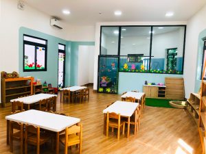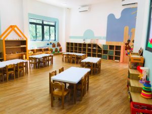 - Trường sở hữu các phòng học với không gian lớn 60m2/phòng để cho bé thoải mái học tập cũng như sinh hoạt vui chơi.