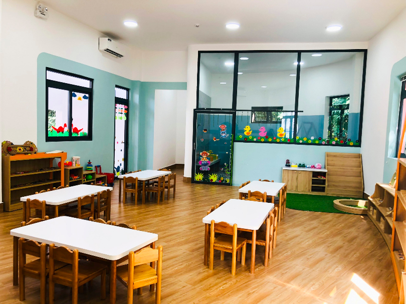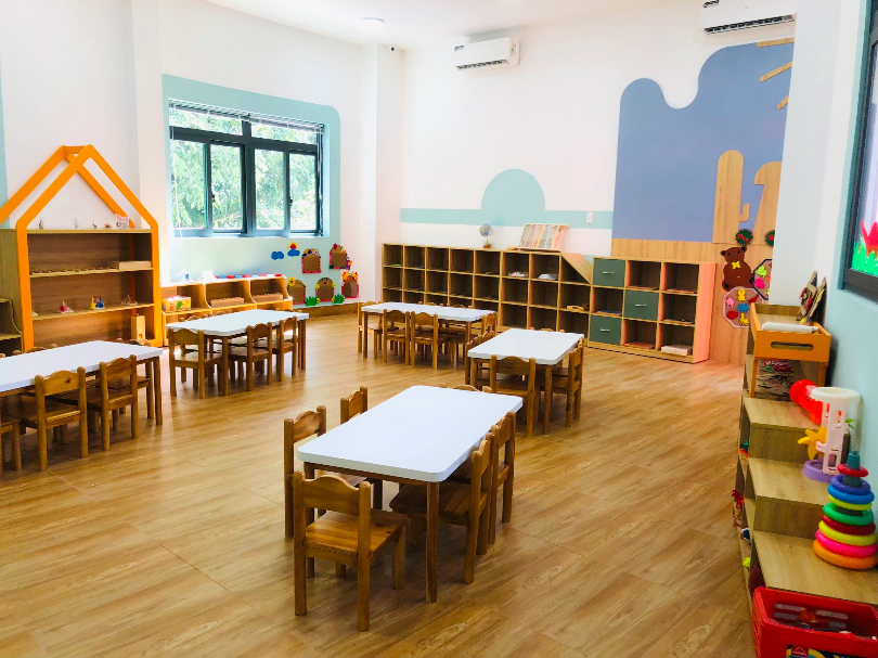 - Các phòng học được thiết kế xinh xắn kết hợp phương pháp Montessori và STEAM.