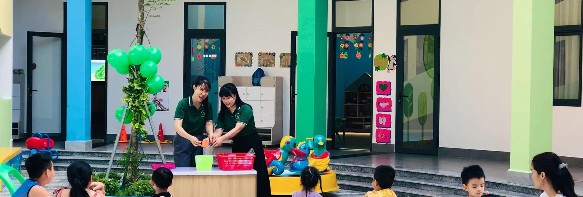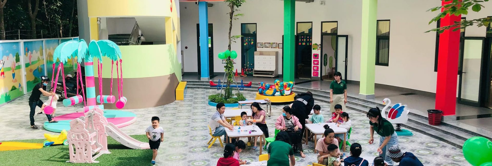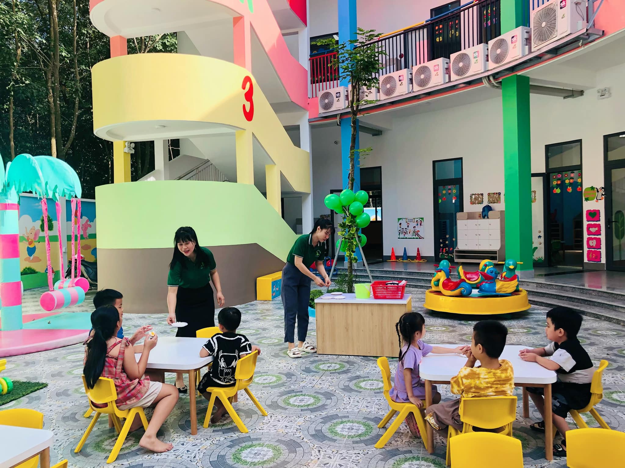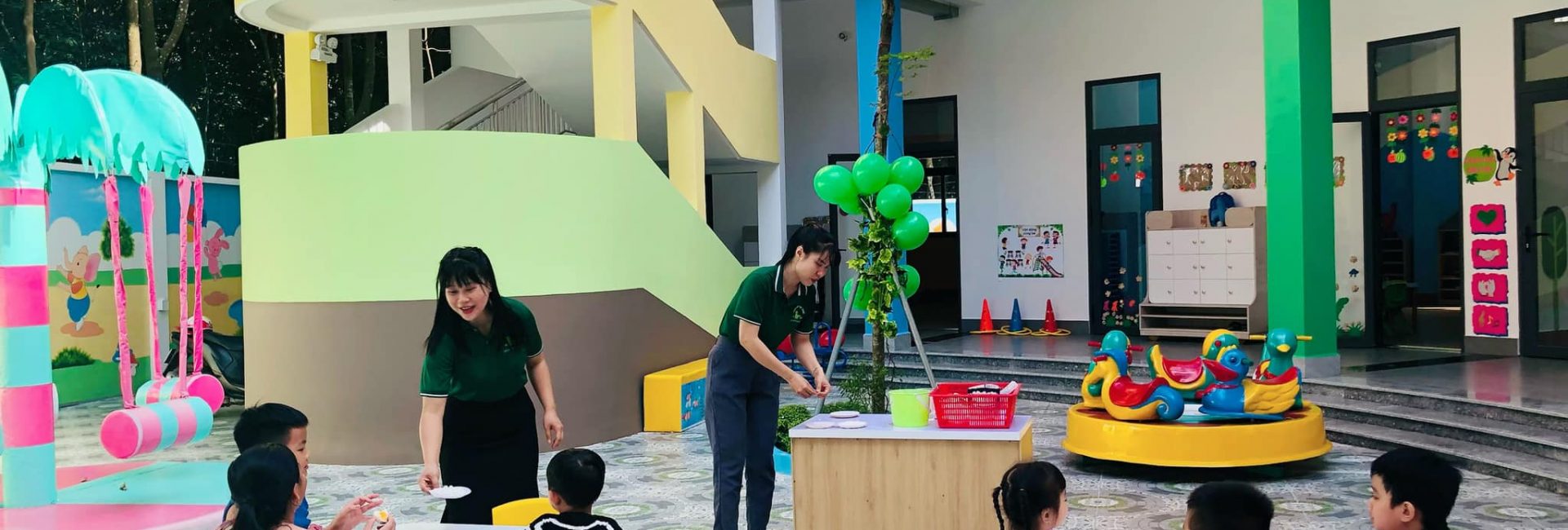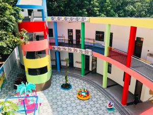 - Khuôn viên trường được xây dựng rộng rãi, hòa hợp với thiên nhiên, kích thích phát triển cho các giác quan của trẻ.