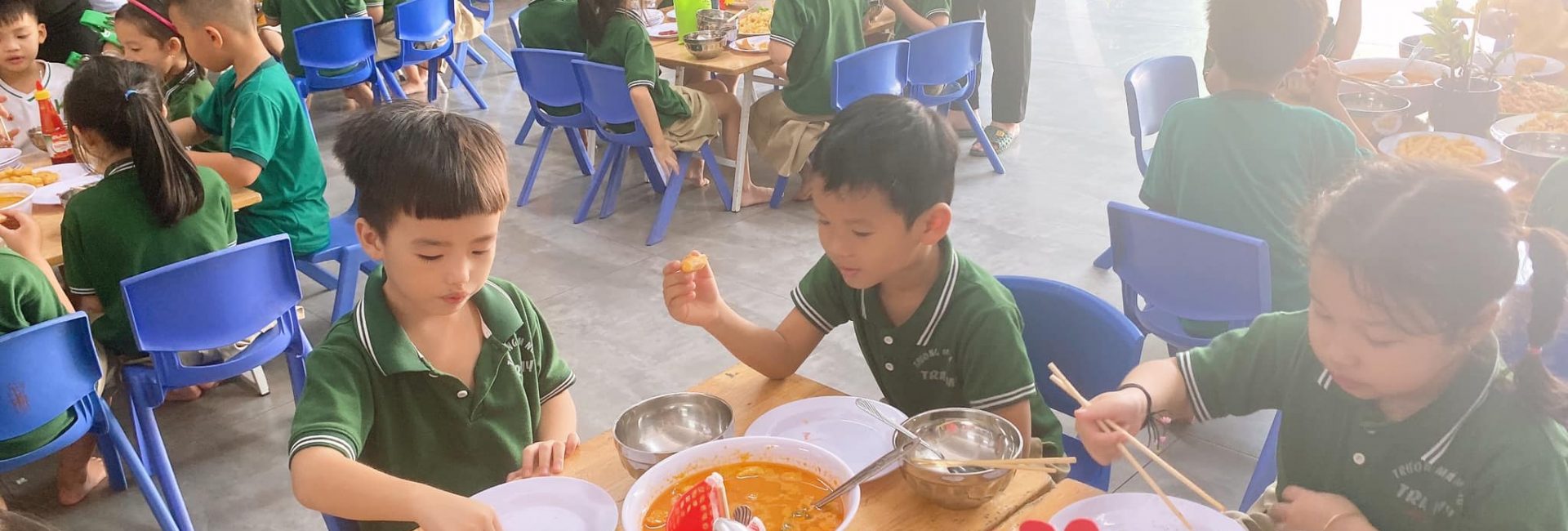 Hệ thống thực đơn và cách tổ chức bữa ăn cho trẻ tại Trà My 2 đặt mục tiêu chính là khuyến khích trẻ phát triển thói quen ăn uống tự giác và lành mạnh. Chương trình dinh dưỡng này không áp đặt hay ép buộc trẻ, mà thay vào đó tập trung vào việc cung cấp chế độ dinh dưỡng khoa học, đầy đủ chất dinh dưỡng, và cân đối giữa các nhóm thức ăn.