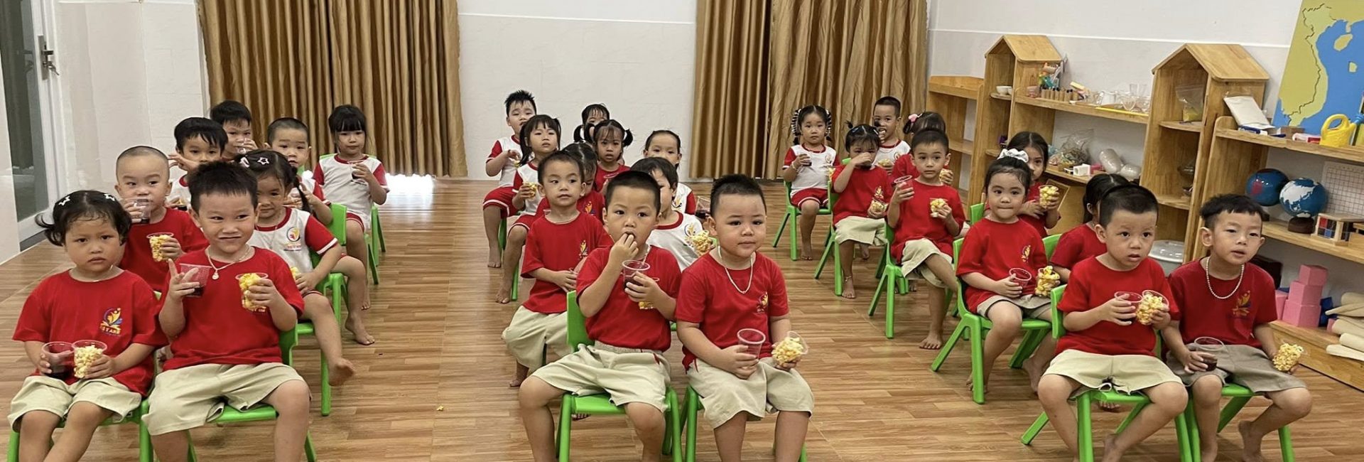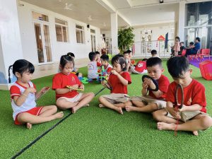 - Chế độ chăm sóc toàn diện: Thời gian ăn uống và giấc ngủ trưa được sắp xếp hợp lý, giúp trẻ hấp thụ dinh dưỡng tốt nhất và luôn tràn đầy năng lượng cho các hoạt động học tập, vui chơi.