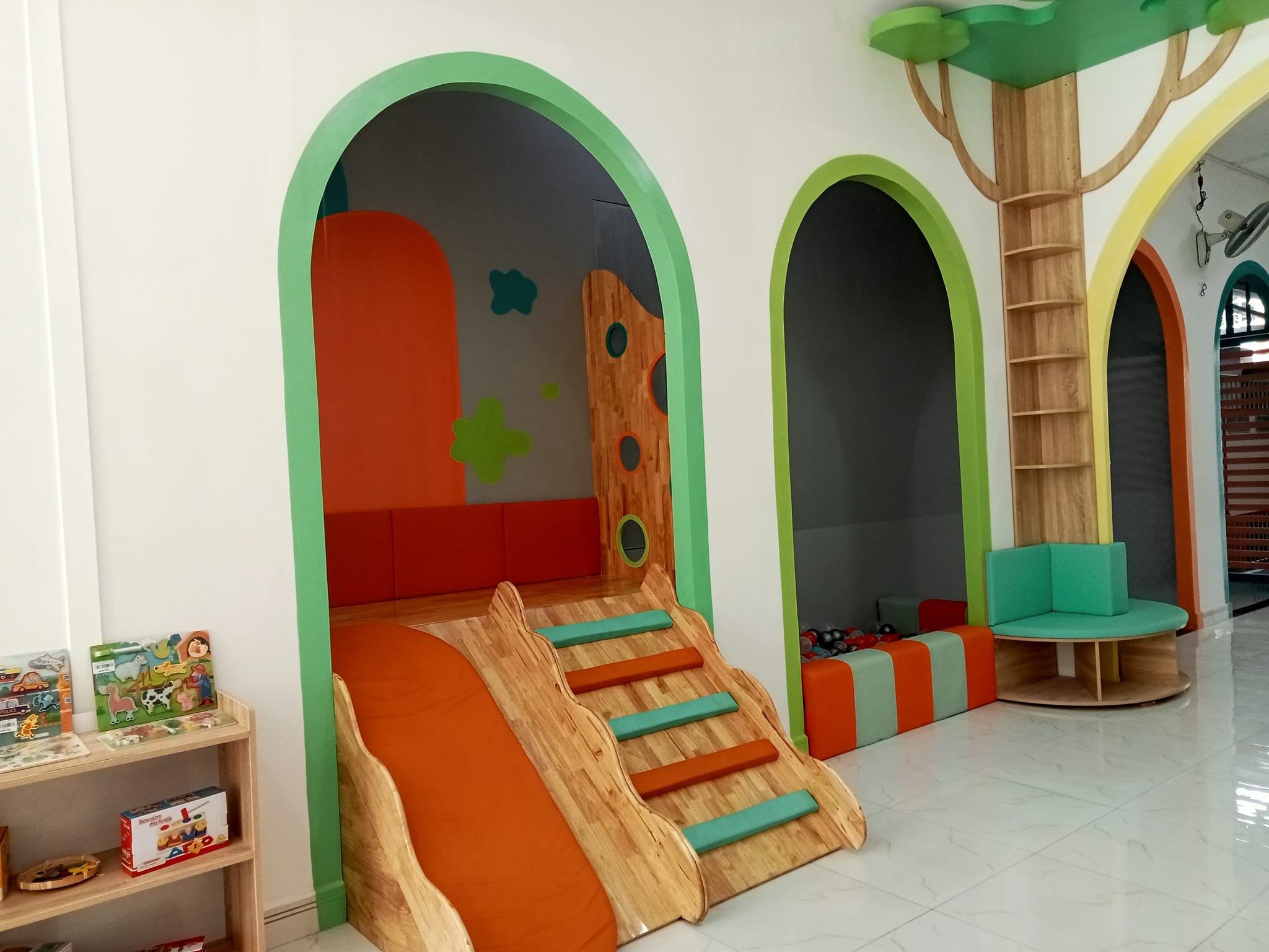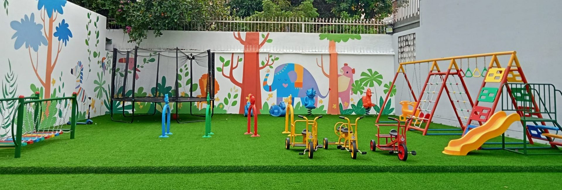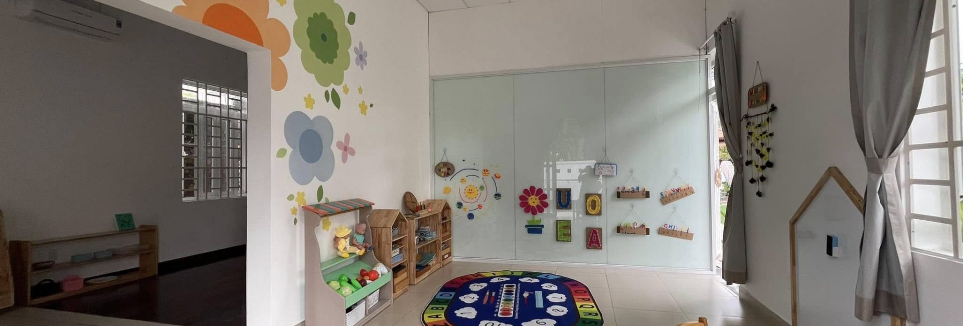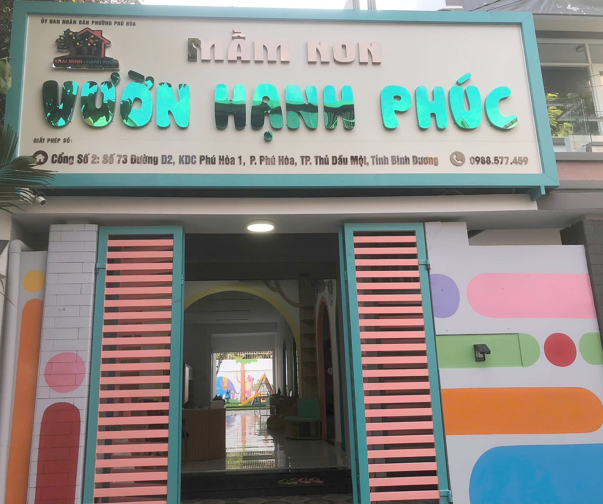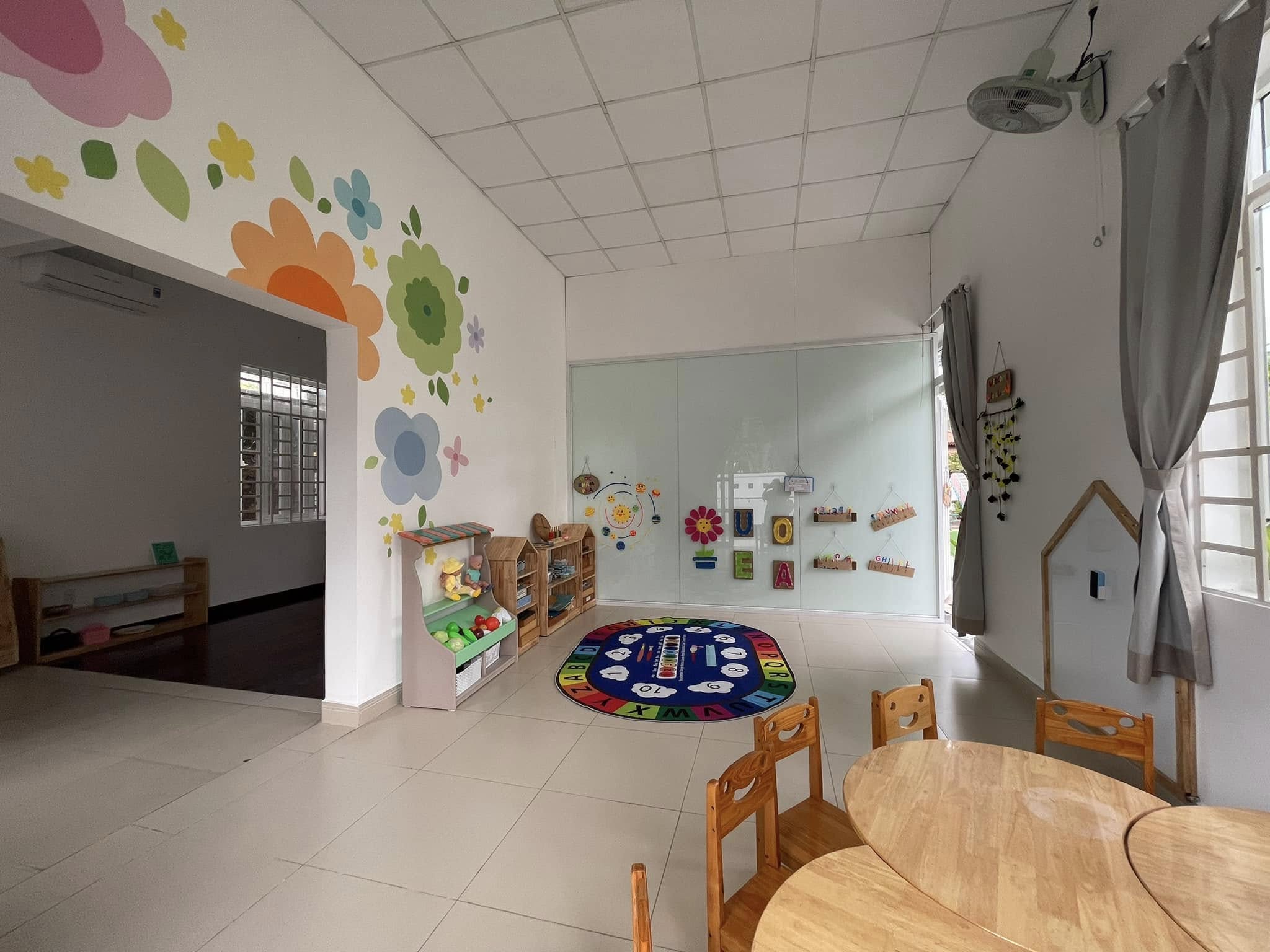 Mầm Non Vườn Hạnh Phúc sở hữu cơ sở vật chất hiện đại, khang trang với các phòng học rộng rãi, được trang bị điều hòa và hệ thống ánh sáng đạt tiêu chuẩn. Khu vực vui chơi ngoài trời được thiết kế an toàn và trang trí đầy màu sắc, giúp trẻ phát triển thể chất và trí tuệ một cách toàn diện. Giáo cụ và trang thiết bị học tập được chọn lọc kỹ lưỡng, hỗ trợ tối ưu cho việc giảng dạy và học tập cho trẻ.
