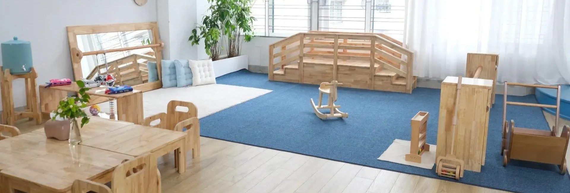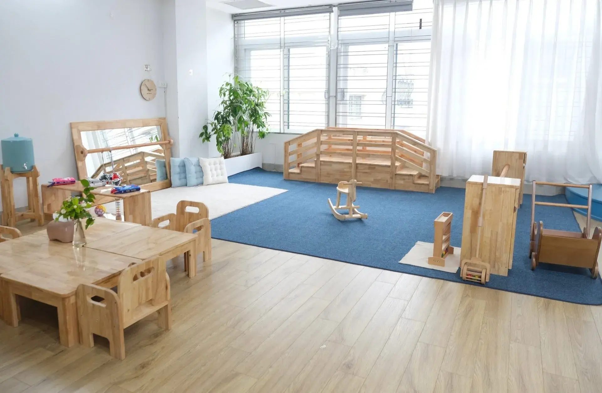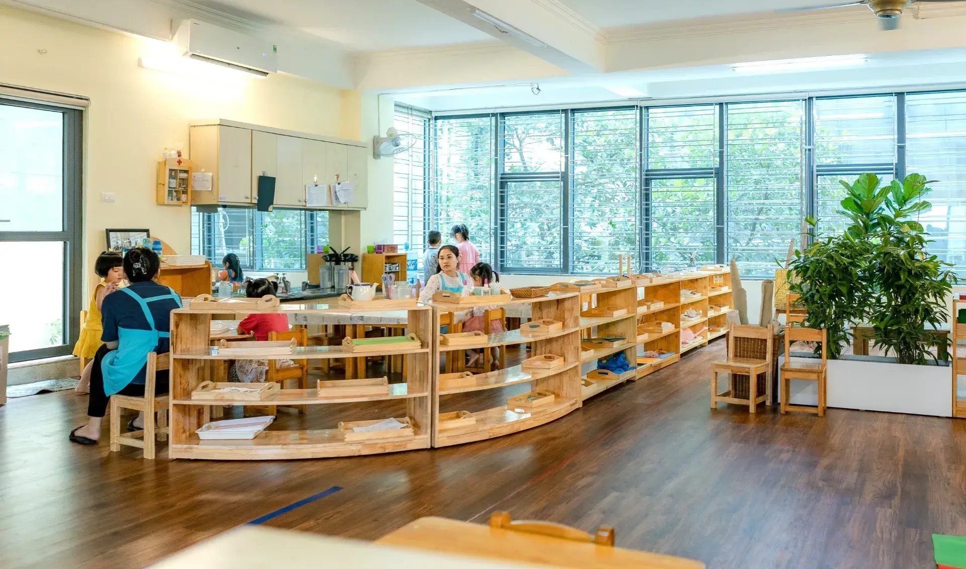 Marilla Montessori Children’s House gây ấn tượng ngay từ lần đầu với hệ thống cơ sở vật chất rộng rãi, thoáng đãng và tràn ngập ánh sáng tự nhiên. Phòng học được thiết kế mở, diện tích lớn hơn so với mặt bằng chung. Toàn bộ lớp học đều được trang bị giáo cụ Montessori chuẩn quốc tế, đi kèm nhiều giáo cụ thủ công được thiết kế riêng, phù hợp với từng giai đoạn phát triển nhạy cảm của trẻ.