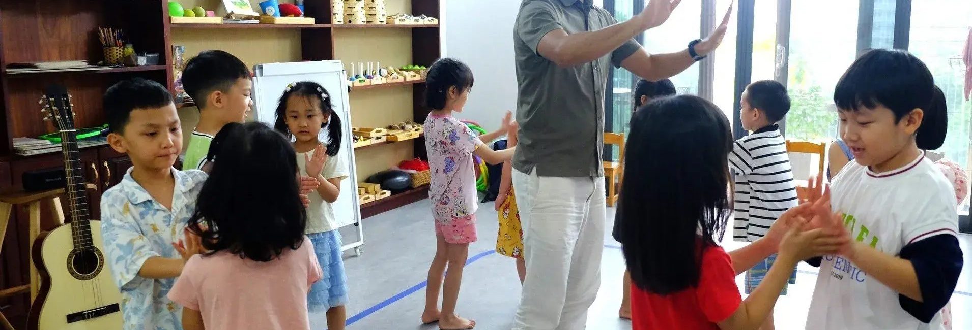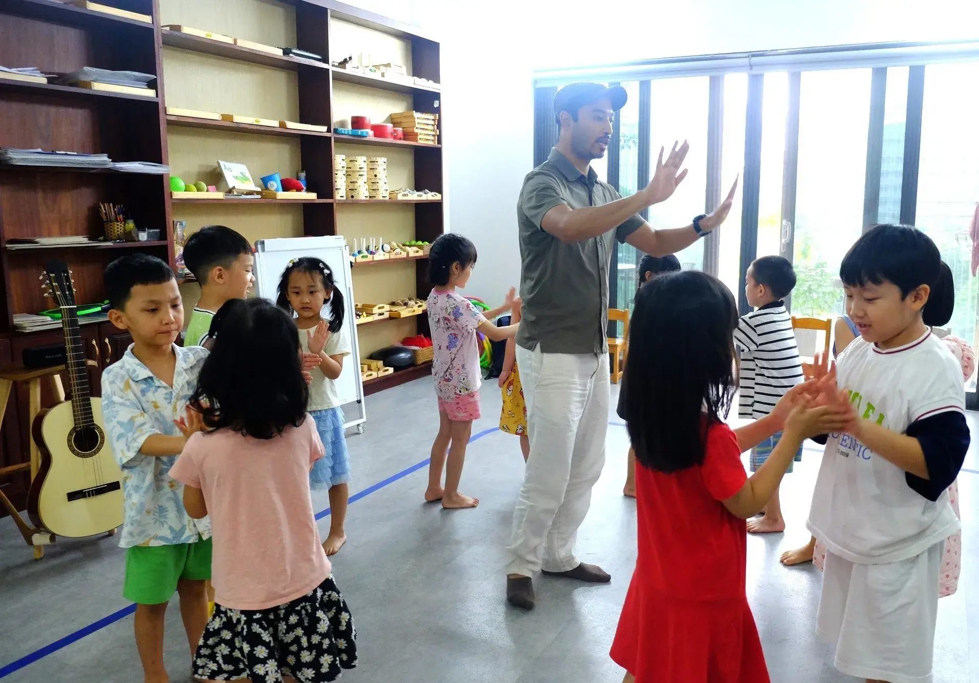Trong bối cảnh hội nhập, Marilla Montessori Children’s House chú trọng đưa ngoại ngữ, đặc biệt là Tiếng Anh trở thành một phần trong đời sống hàng ngày của trẻ. Không chỉ đơn thuần là các tiết học từ vựng, ngữ âm, mà trường hướng đến phương pháp “học ngoại ngữ tự nhiên”: trẻ được tiếp xúc qua các hoạt động Montessori, bài hát, trò chơi và giao tiếp thường ngày với giáo viên. Việc lồng ghép ngoại ngữ vào môi trường học tập giúp trẻ làm quen từ sớm, hình thành phản xạ ngôn ngữ một cách nhẹ nhàng, tự nhiên thay vì học vẹt.