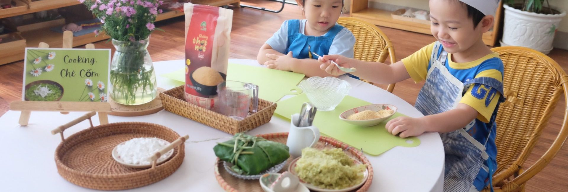 Điểm đáng chú ý là việc kết hợp dinh dưỡng với giáo dục: trẻ không chỉ ăn ngon, đủ chất, mà còn học cách nhận biết thực phẩm, rèn thói quen ăn uống lành mạnh từ nhỏ. Sự đồng bộ giữa dinh dưỡng và triết lý Montessori thể hiện qua việc khuyến khích trẻ tự lập trong bữa ăn, biết lắng nghe cơ thể và trân trọng nguồn thức ăn.