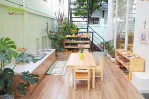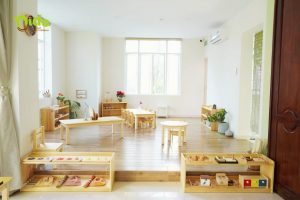 Lớp học Montessori được thiết kế đặc biệt để phản ánh và đáp ứng đặc điểm tâm trí ở từng giai đoạn phát triển của trẻ. Các khu vực trong lớp được tạo ra để khuyến khích sự độc lập và khả năng sáng tạo. Môi trường ấm áp với nội thất chủ yếu là gỗ, tạo ra không gian học tập an toàn và thoải mái. Học cụ được đầu tư đầy đủ, hỗ trợ quá trình học thông qua tương tác và thực hành.