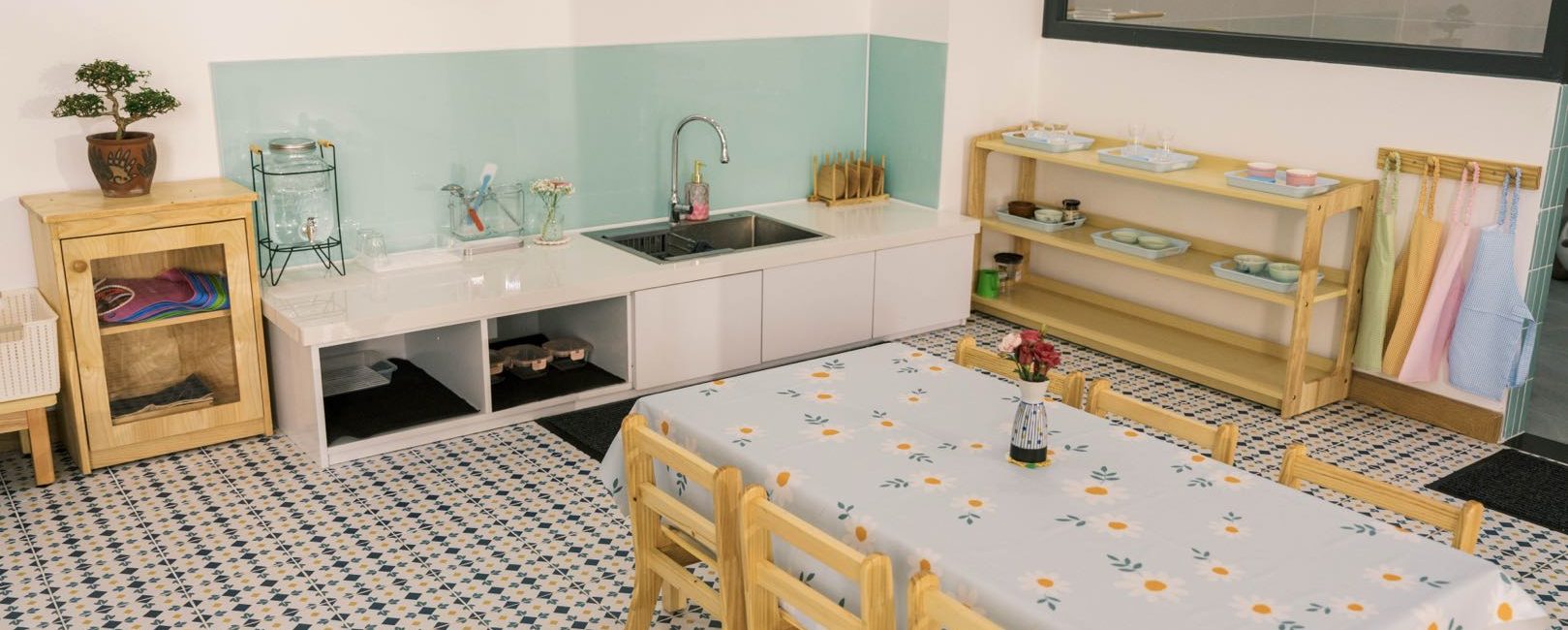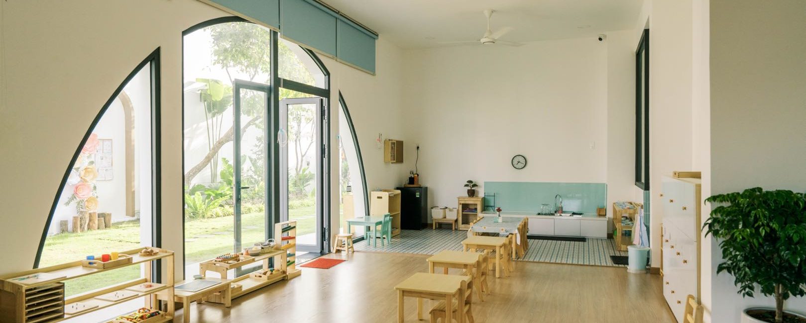 NORA Preschool Biên Hoà là cơ sở tiếp theo trong hành trình mở rộng mô hình giáo dục nhân văn của hệ thống NORA Preschool, không gian được thiết kế theo tiêu chí tối giản và tinh tế, hoàn toàn phù hợp với triết lý Montessori. Các phòng học đều ngập tràn ánh sáng tự nhiên, với học cụ Montessori được bố trí ở tầm thấp, khuyến khích trẻ tự do và chủ động khám phá. Mọi chi tiết, từ kệ sách, nội thất, đến từng món giáo cụ, đều được tính toán kỹ lưỡng theo chiều cao và nhịp sinh hoạt của trẻ, tạo nên một không gian ấm áp, thân thiện – nơi mỗi góc nhỏ đều mở ra cơ hội học hỏi và phát triển toàn diện từ bên trong.