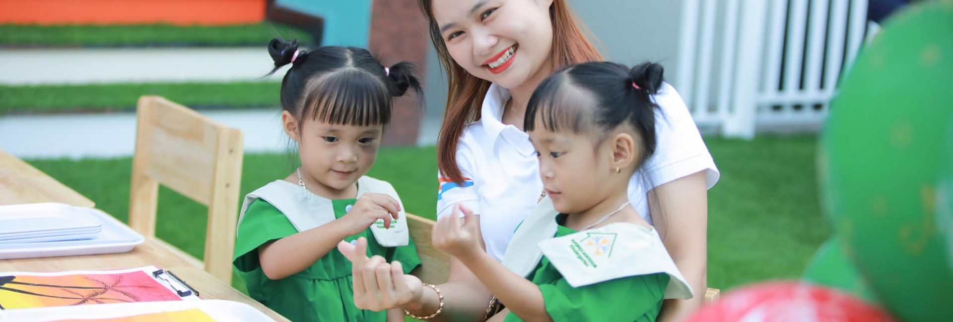 Trẻ sẽ được thỏa sức vận động và khám phá trong không gian sân chơi ngoài trời xanh mát và an toàn. Các hoạt động ngoại khóa đầy thú vị hàng tháng giúp trẻ trải nghiệm thế giới xung quanh vài khuyến khích sự giao lưu, hòa nhập giữa các trẻ, làm quen với cách làm việc nhóm và phát triển kỹ năng xã hội từ nhỏ.