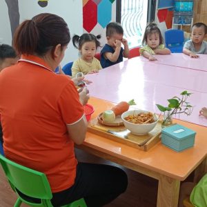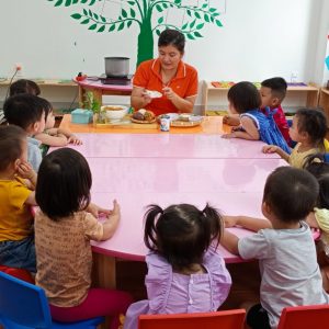 TAIYO Montessori Preschool luôn chú trọng đến sức khỏe của trẻ và chất lượng dinh dưỡng các bữa ăn trong ngày. Mỗi bữa ăn tại trường đảm bảo sự đa dạng, phong phú, cân bằng dinh dưỡng, hương vị – màu sắc – mùi vị – cách chế biến phù hợp với trẻ nhỏ. Giờ ăn cũng là khoảng thời gian mà các trẻ trong lớp có thể tương tác, quan tâm chăm sóc nhau trong không khí quây quần ấm áp. Thông qua giờ ăn, trẻ được trải nghiệm, biết tự phục vụ bản thân và hỗ trợ bạn, tự chia cơm, tự lấy thức ăn, tự mình ăn hết suất một cách vui vẻ và thân thiện.