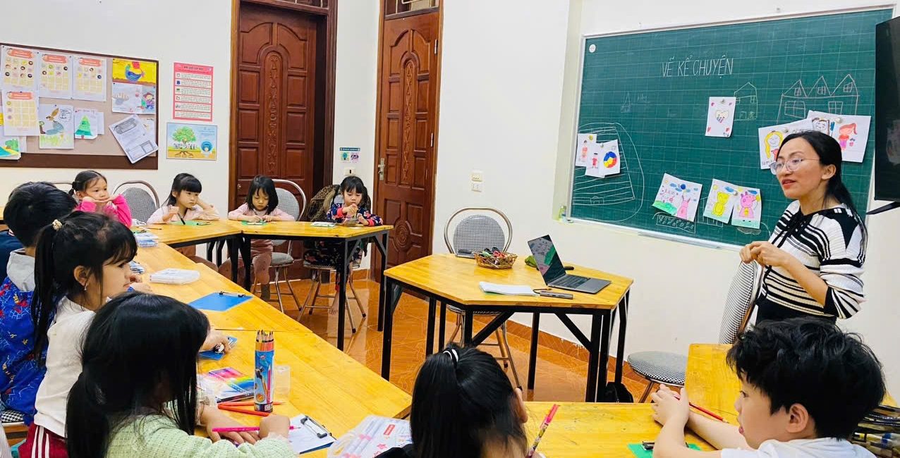 Trung tâm áp dụng phương pháp giảng dạy sáng tạo và khai phóng, khuyến khích học viên chủ động tư duy, tìm tòi và tự do thể hiện bản thân. Các em được học trong một không gian cởi mở, giàu tính trải nghiệm, từ đó hình thành sự tự tin, bản lĩnh và khả năng sáng tạo bền vững.